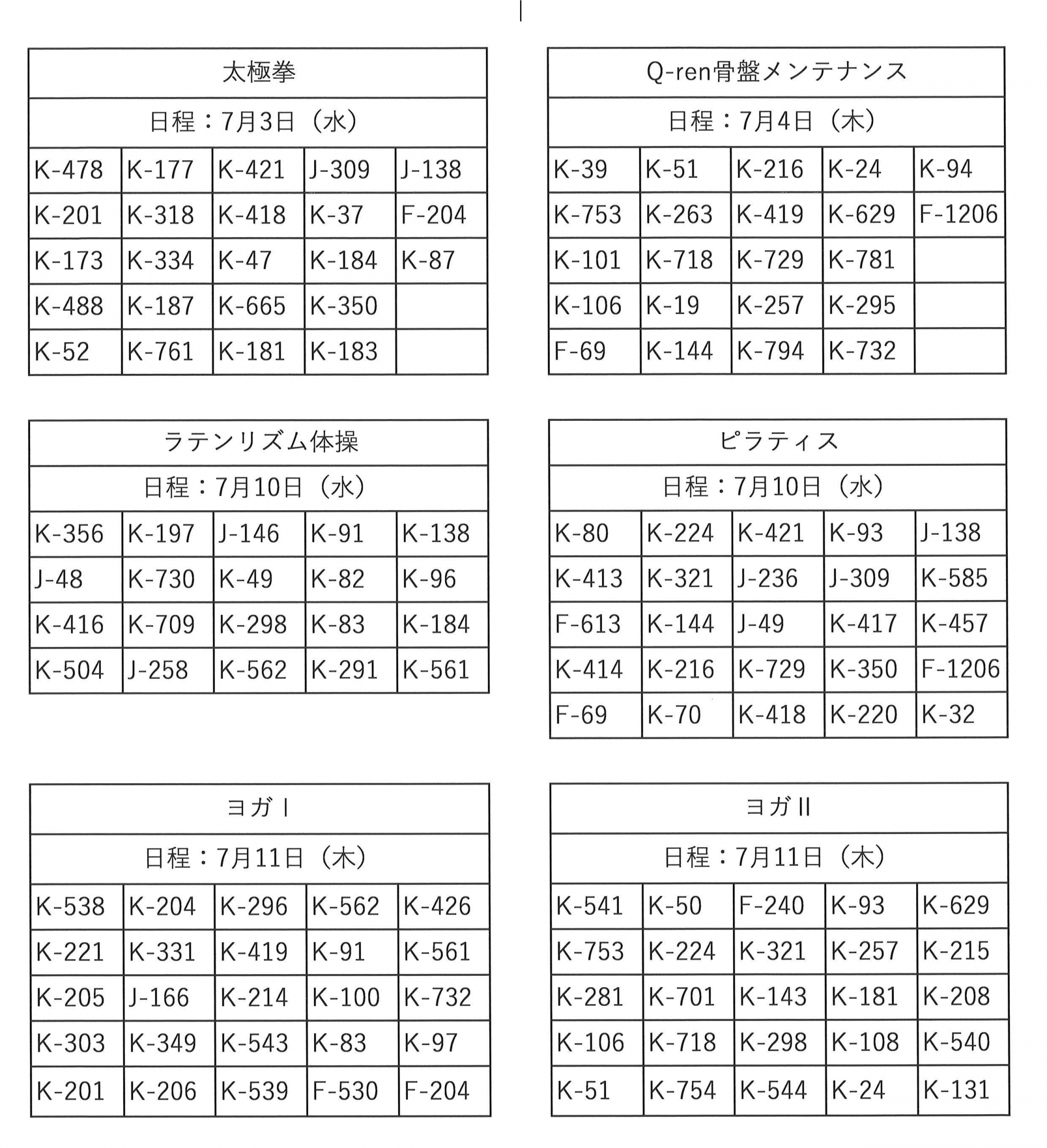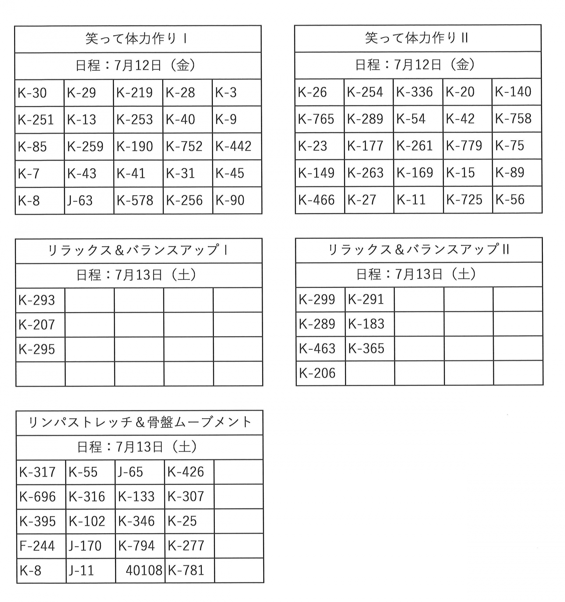 7月前半開催毎回申込講座 当選者連絡その1【体操講座】