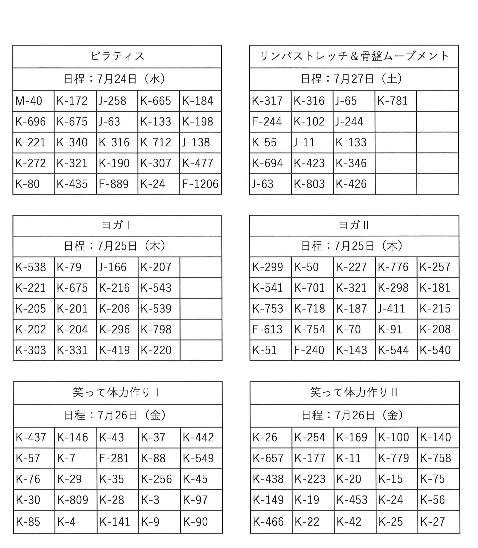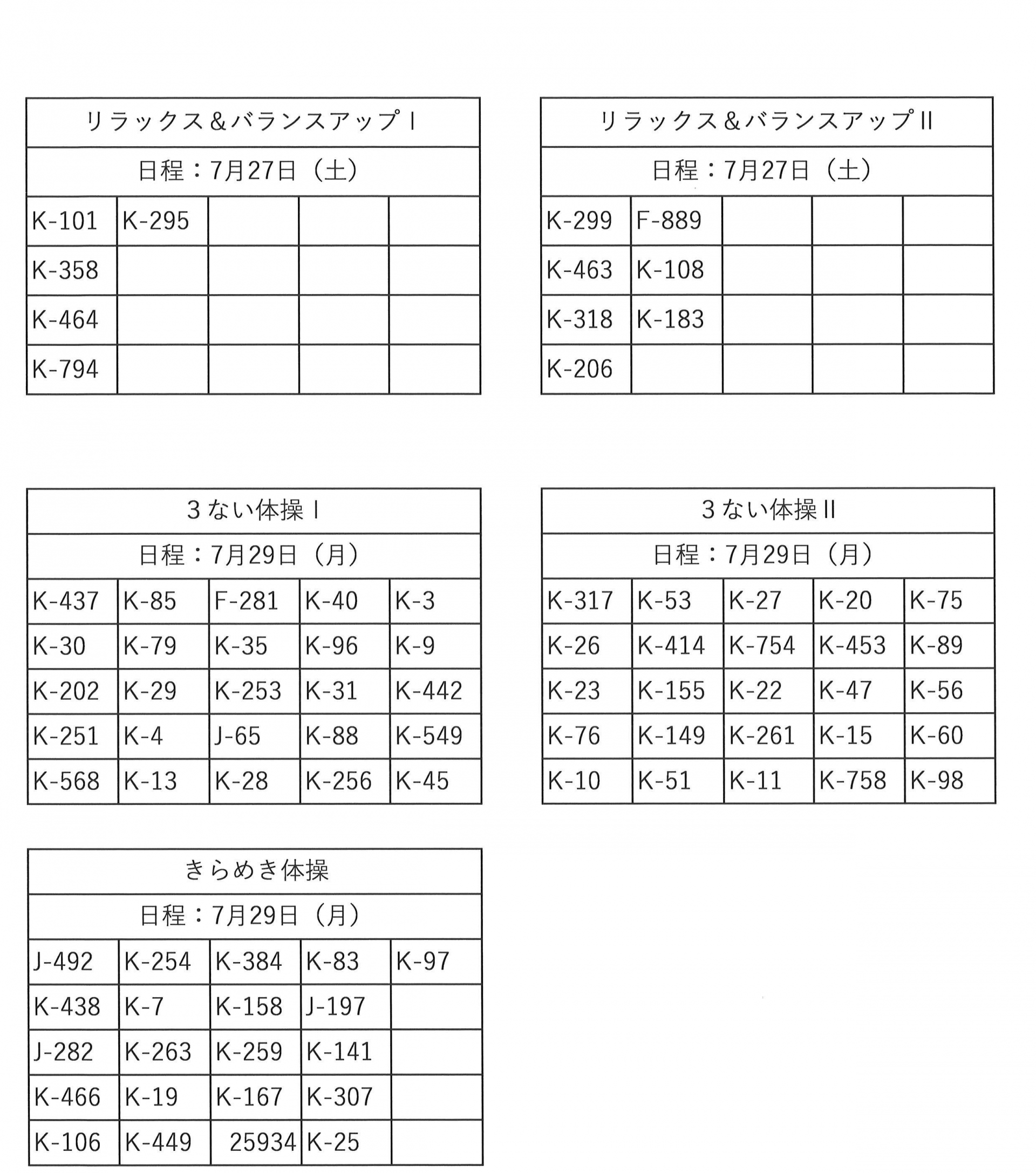7月後半開催毎回申込講座 当選者連絡その1【体操講座】