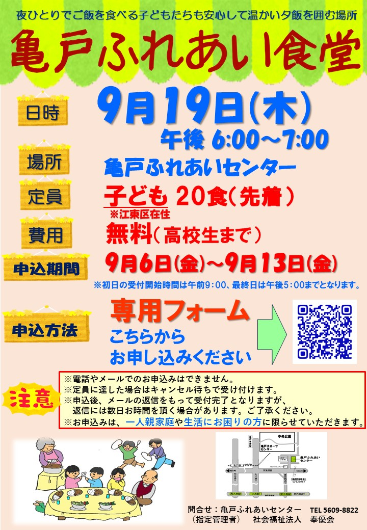 次回の亀戸ふれあい食堂は、9月19日(木)午後6時から午後7時までです★