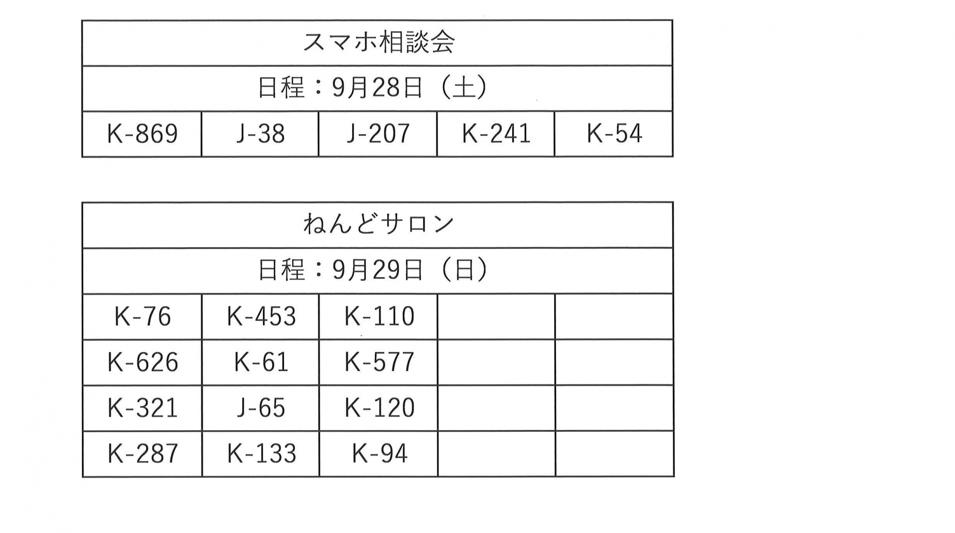 9月後半開催毎回申込講座 当選連絡その2【その他の講座】