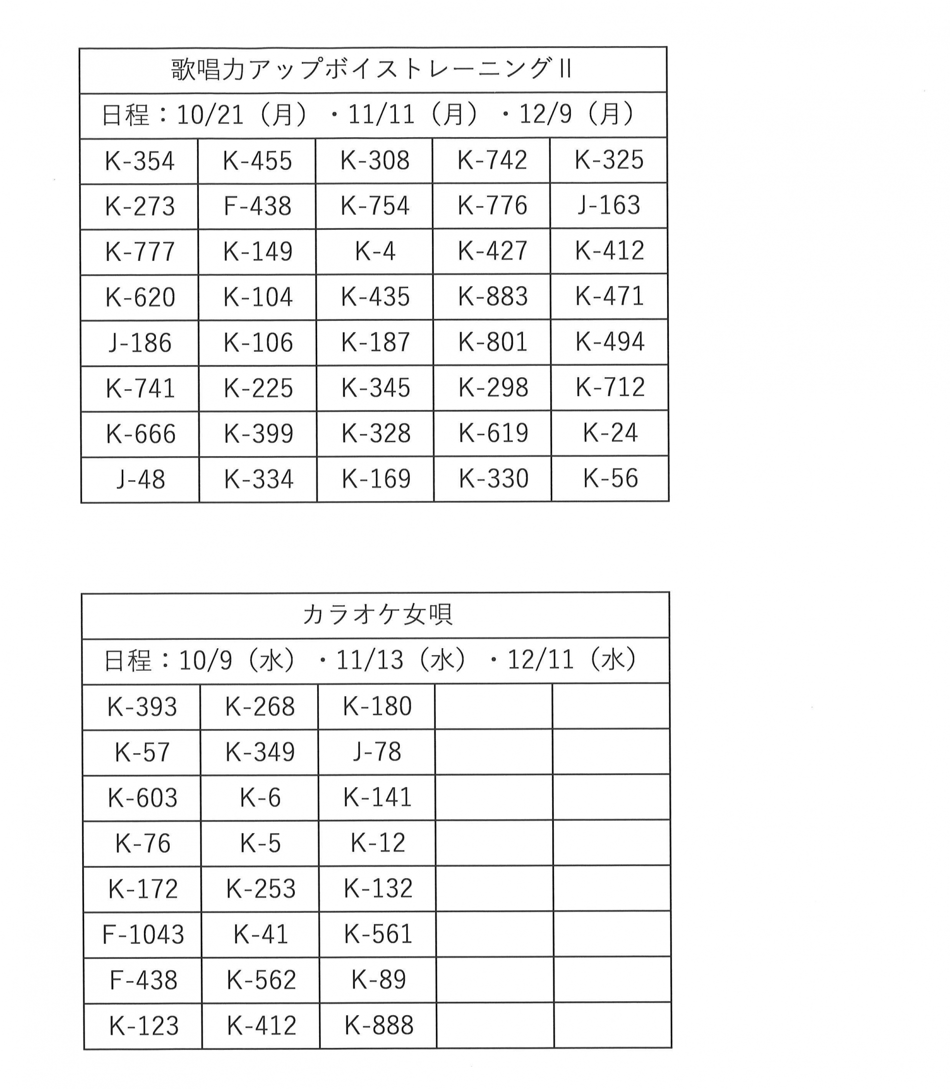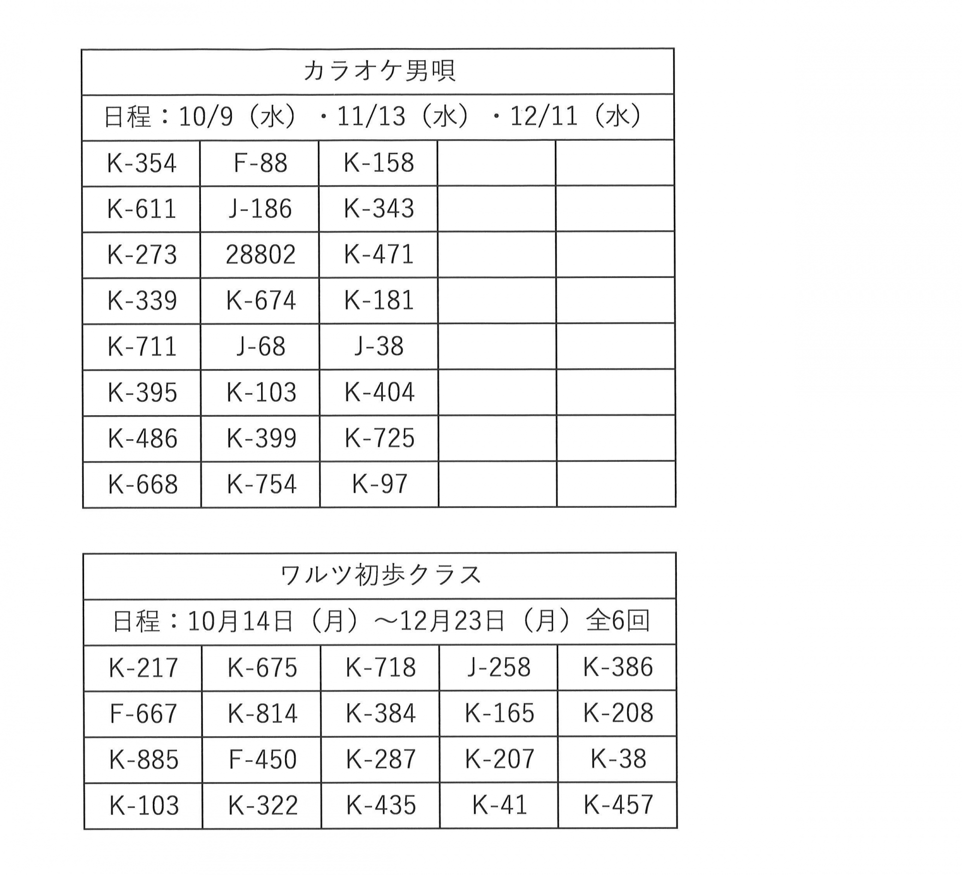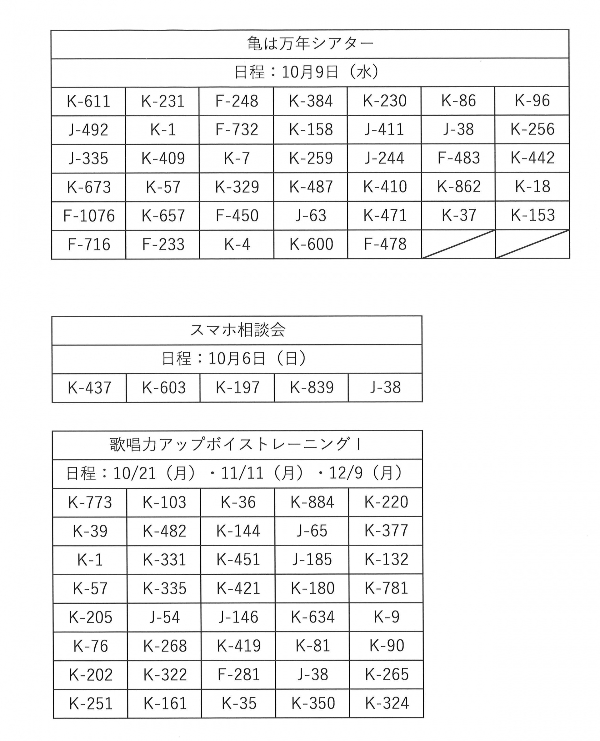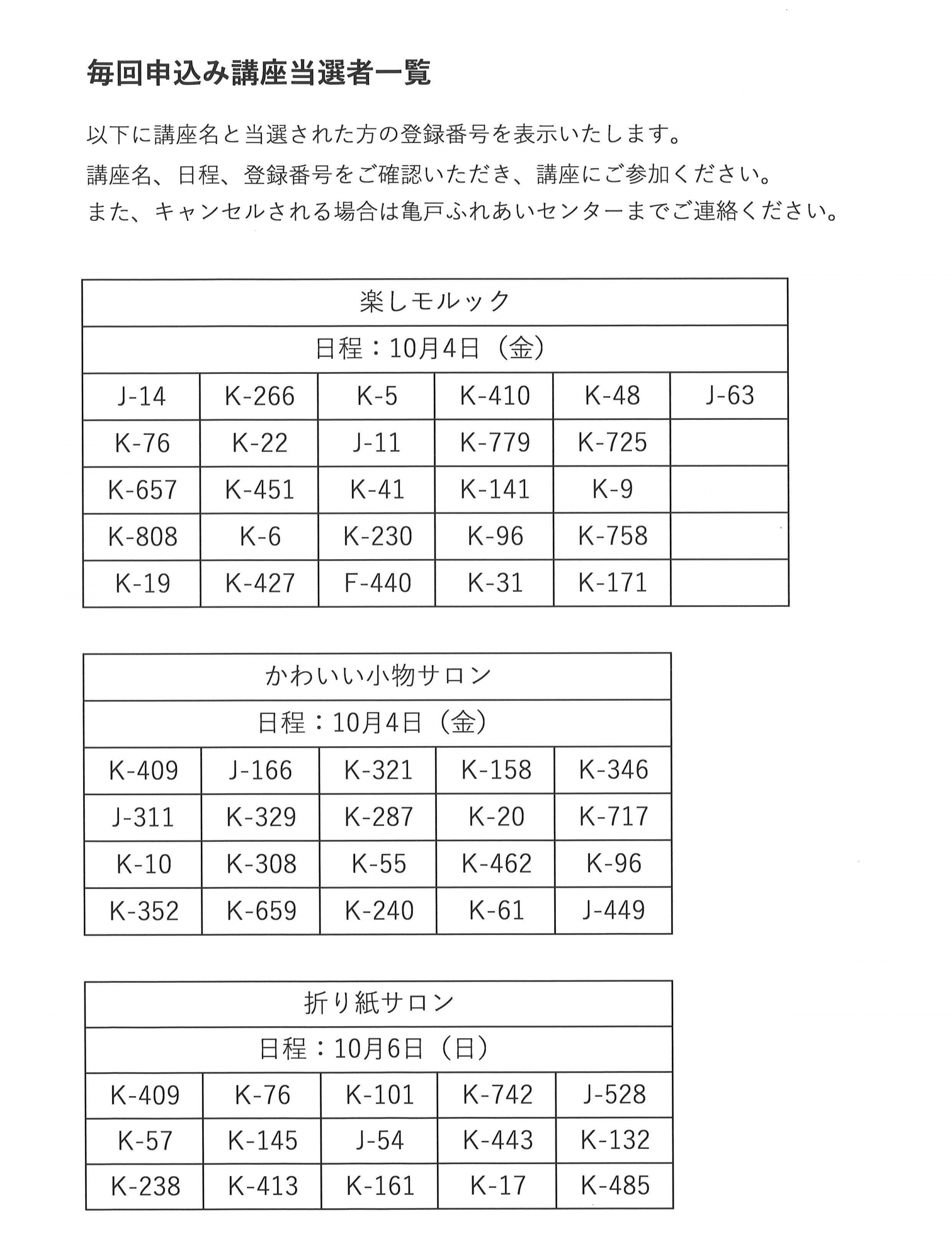10月前半開催毎回申込講座・3ヶ月講座 当選連絡その2【その他の講座】