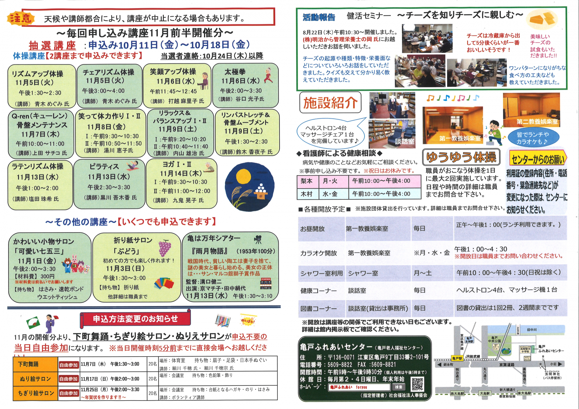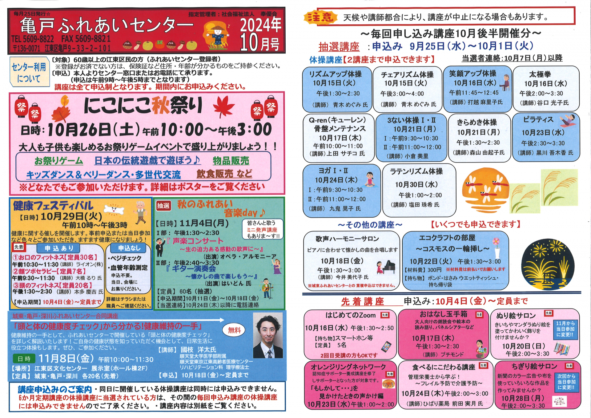 2024.09.25 お知らせ 2024年亀戸ふれあいセンター10月号おたより Tweet シェアする 2024年亀戸ふれあいセンター10月号おたより完成しました。 前の記事 2024.09.25 お知らせ 2024亀戸ふれあいセンター10月号予定表 次の記事 2024.09.24 お知らせ 祝!ドリかめ手帳スタンプ200個達成‼ 一覧へ戻る