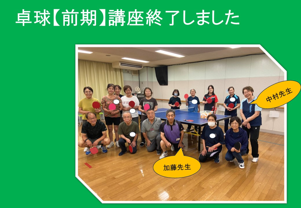 4月~始まった【卓球①初心者、②初中級】クラスが9月21日に終了しました。