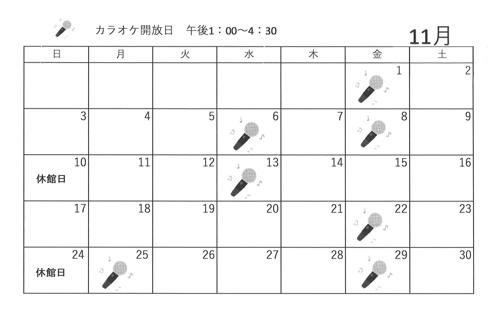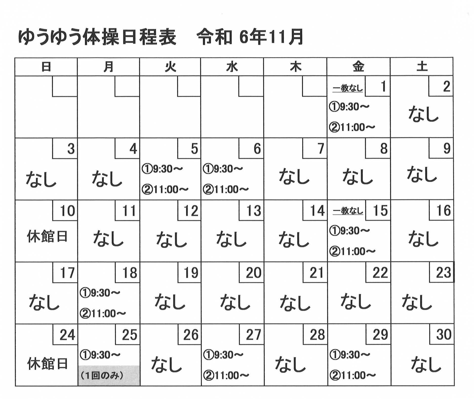 11月開催【ゆうゆう体操、カラオケ自由開放、卓球自由開放】日程表のお知らせです。