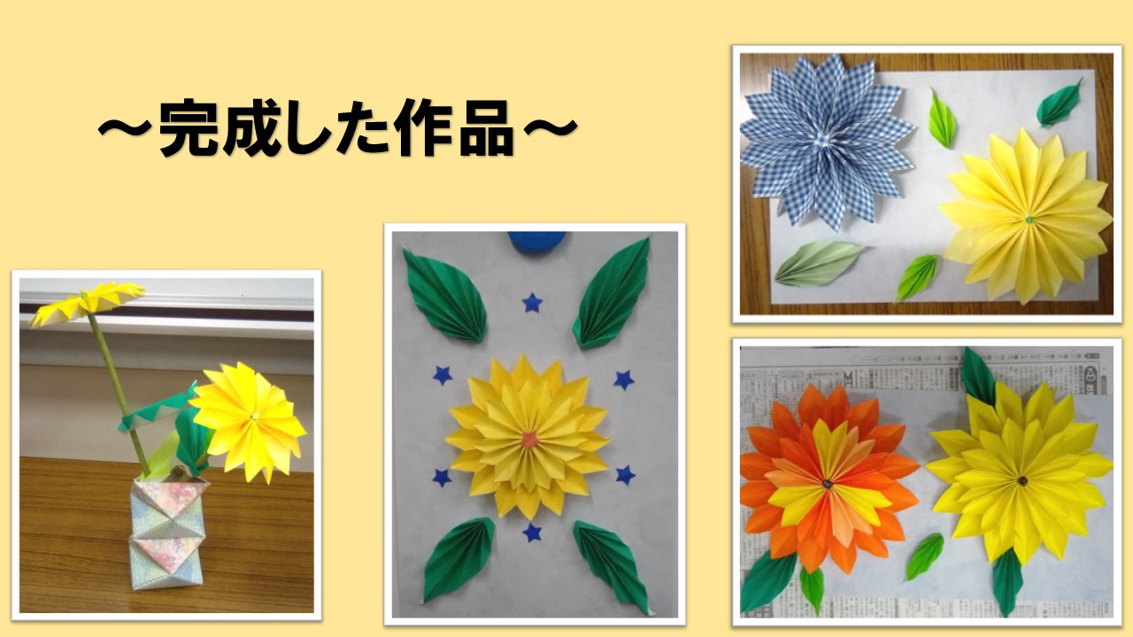 台紙に張り付けるバージョンと以前作った「花瓶」に刺せるように茎をつけるバージョンが選べたので皆さん悩みながらも楽しく作成致しました。