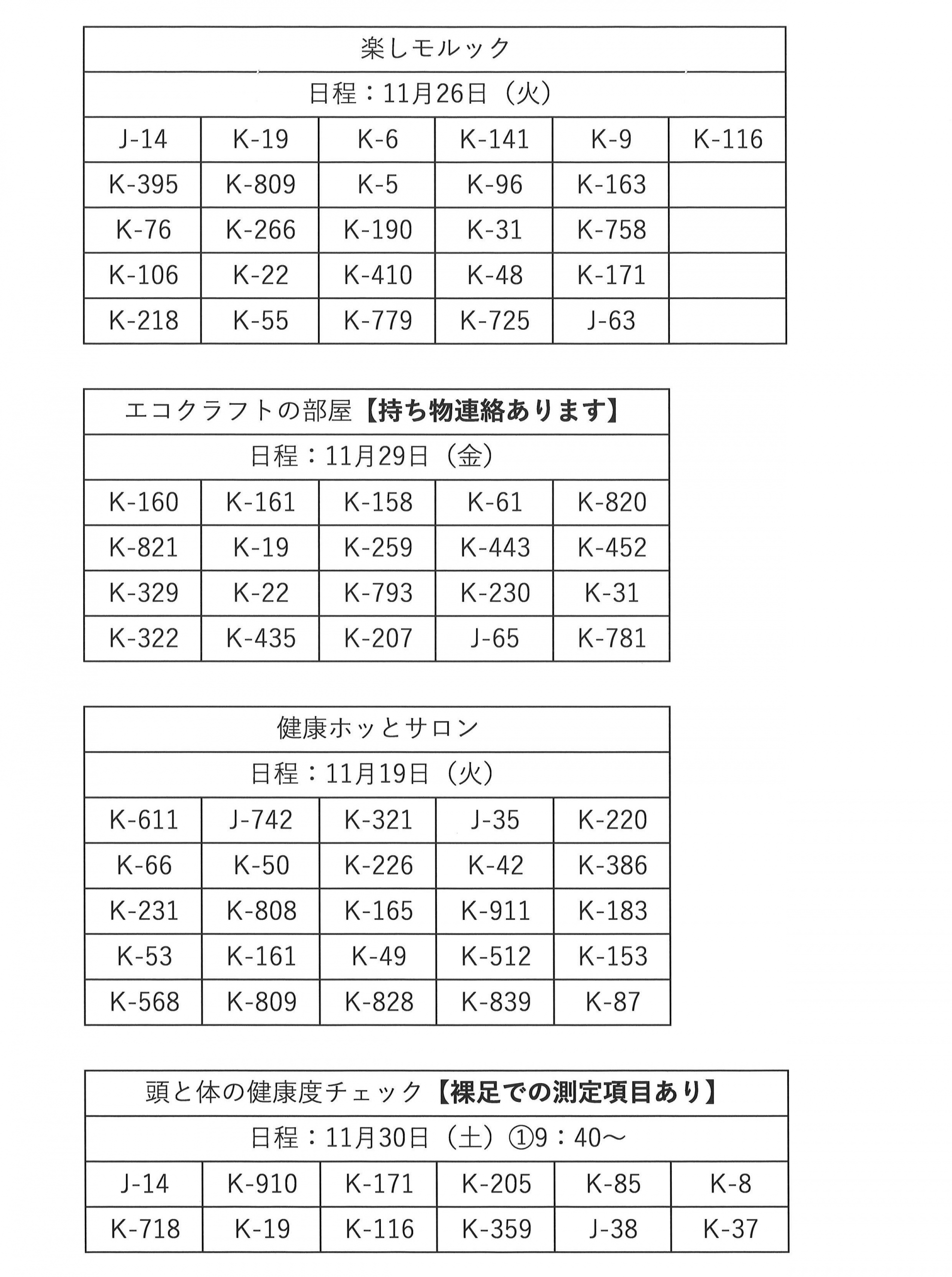 11月後半開催毎回申込講座 当選連絡その2【その他の講座】
