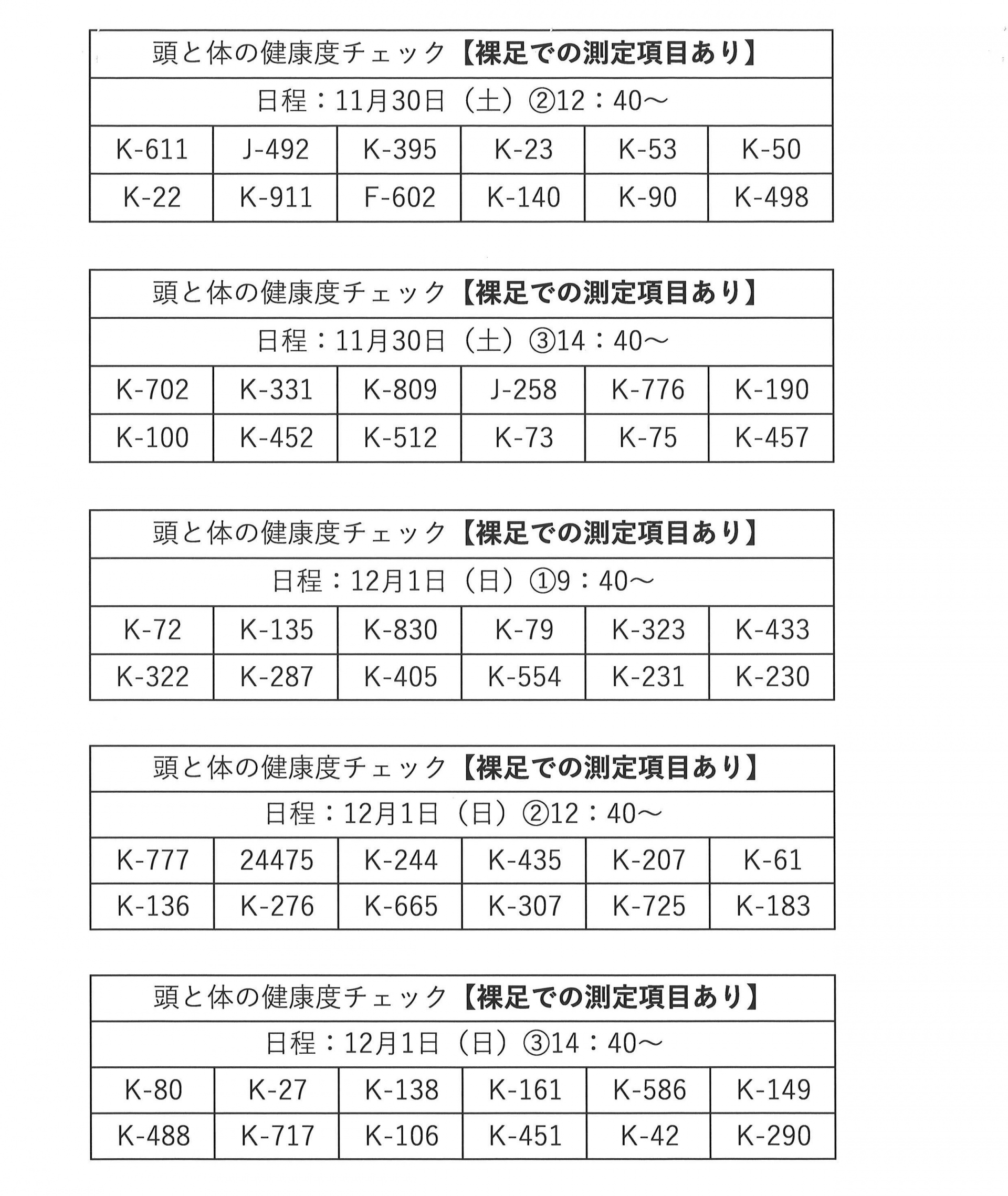 ※【頭と体の健康度チェック2024】に当選された方は、裸足になっての測定項目がございますので、当日はタイツやストッキングなどは避けてください。