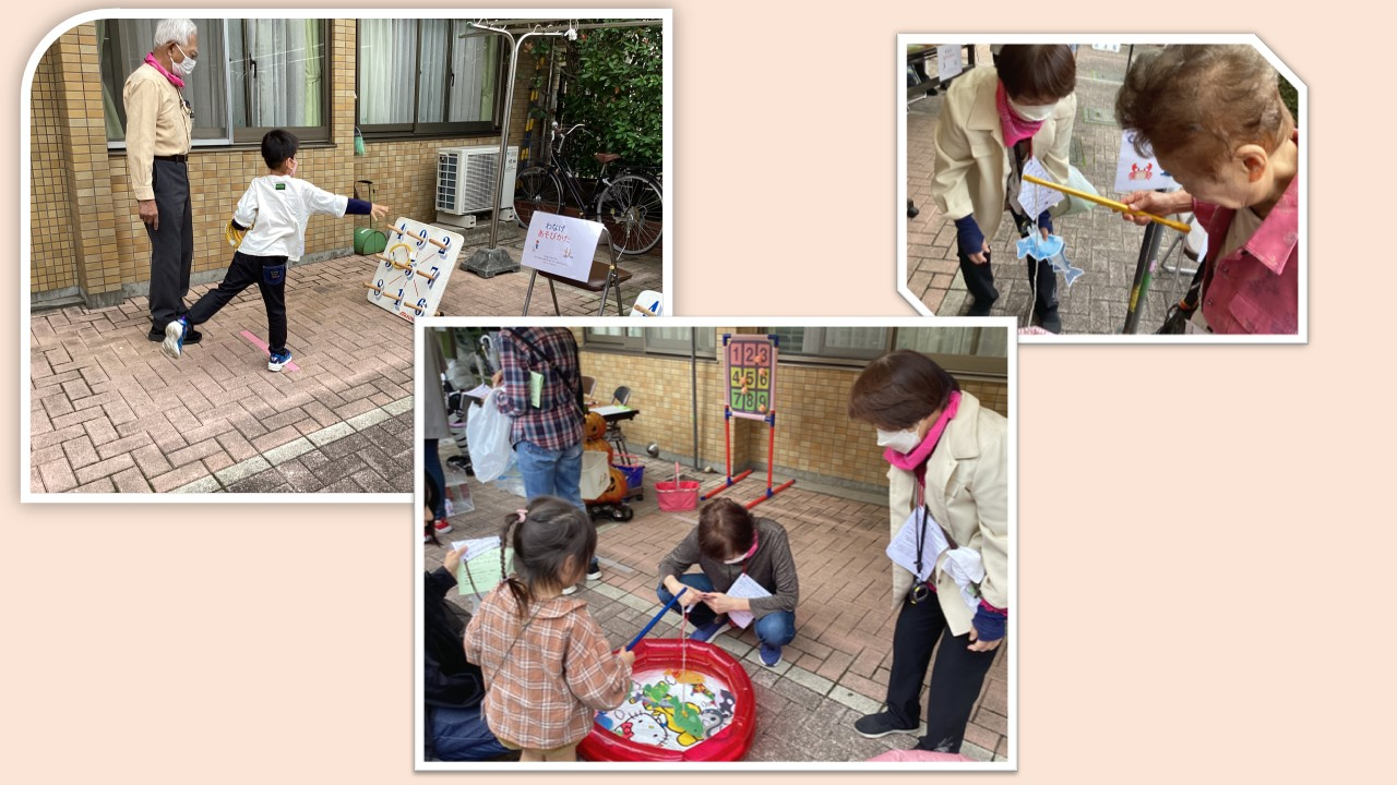 にこにこ秋まつり②では屋外で開催したゲームコーナーの様子をご紹介します。