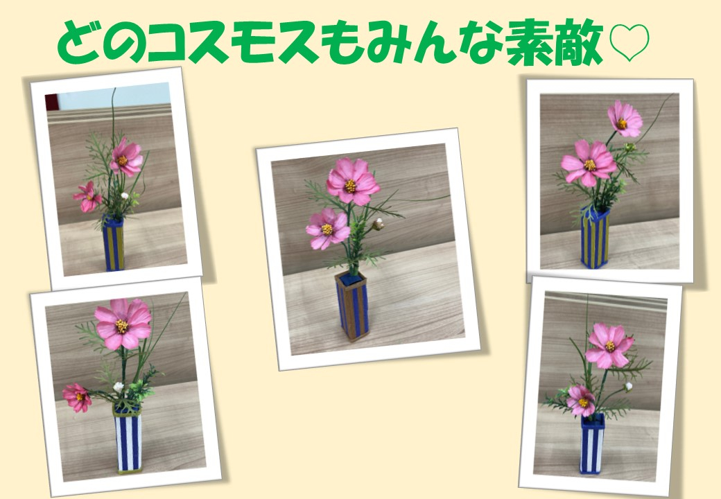今回作る作品は、秋の花『コスモスの一輪挿し』です。