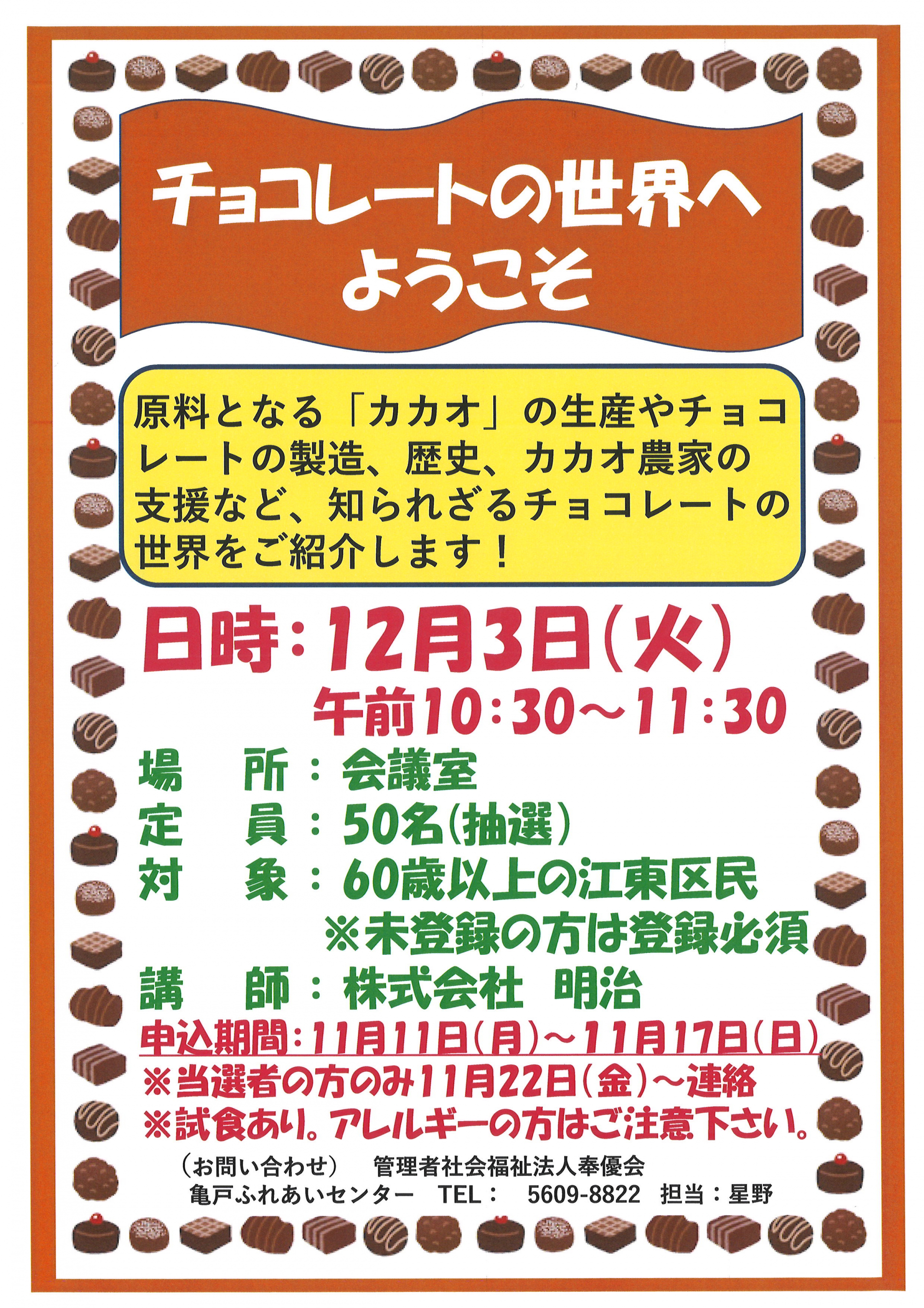 健活セミナー【チョコレートの世界へようこそ】講座申込み始まりました♪