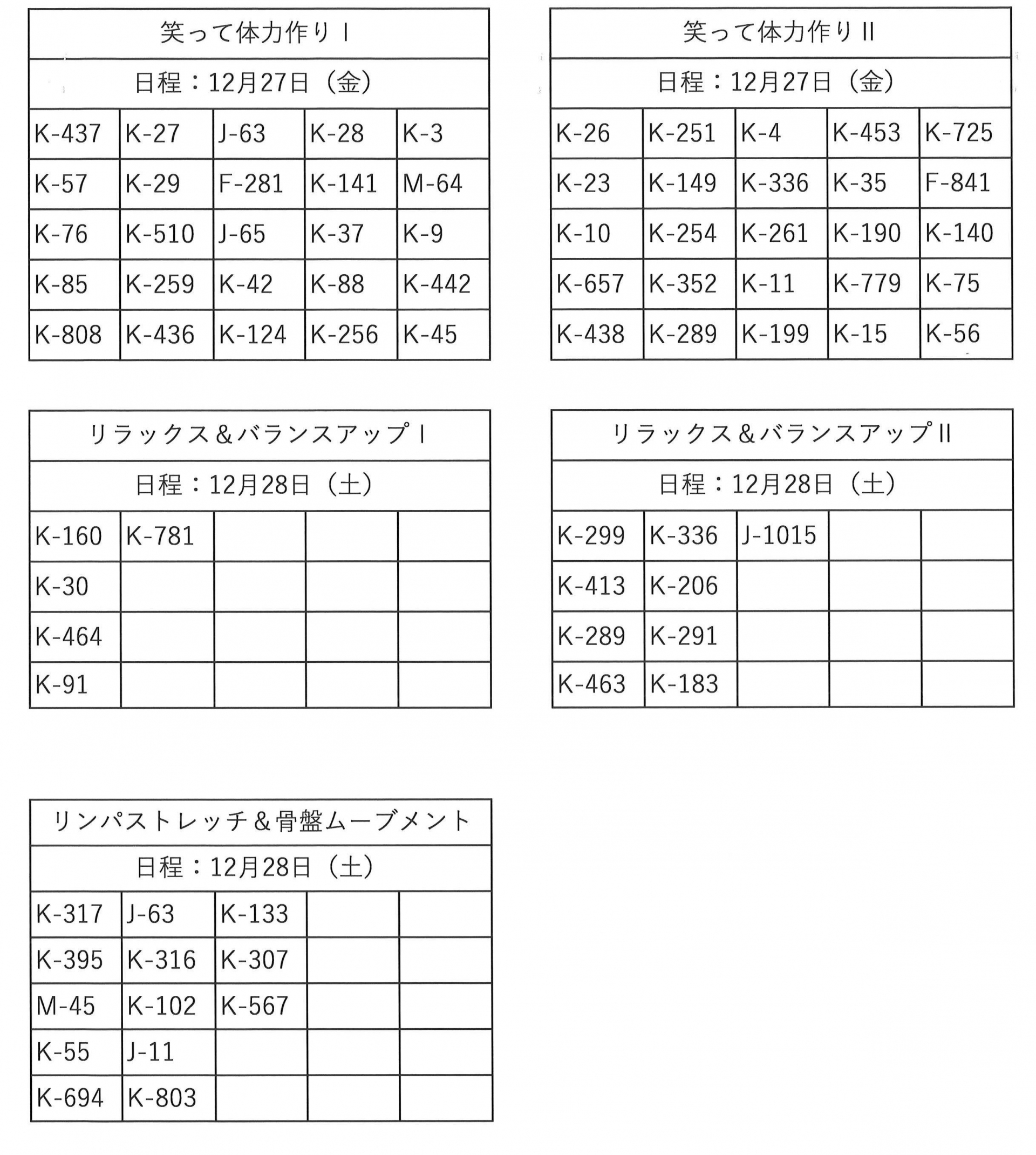 12月後半開催毎回申込講座 当選連絡その1【体操講座】
