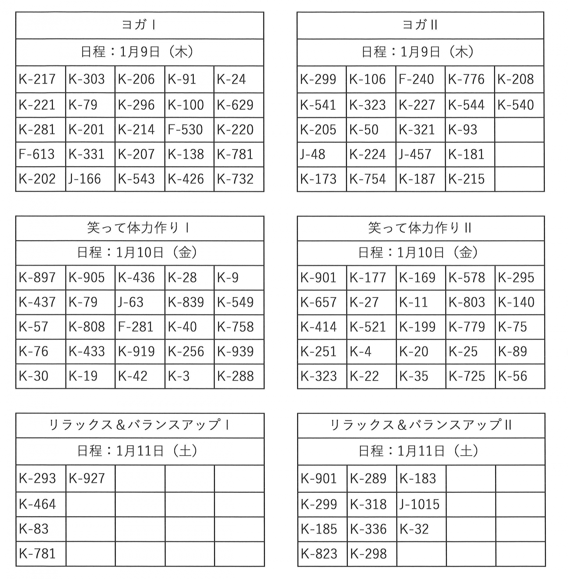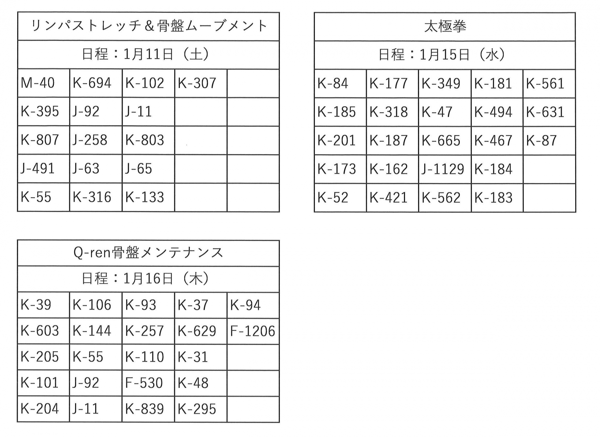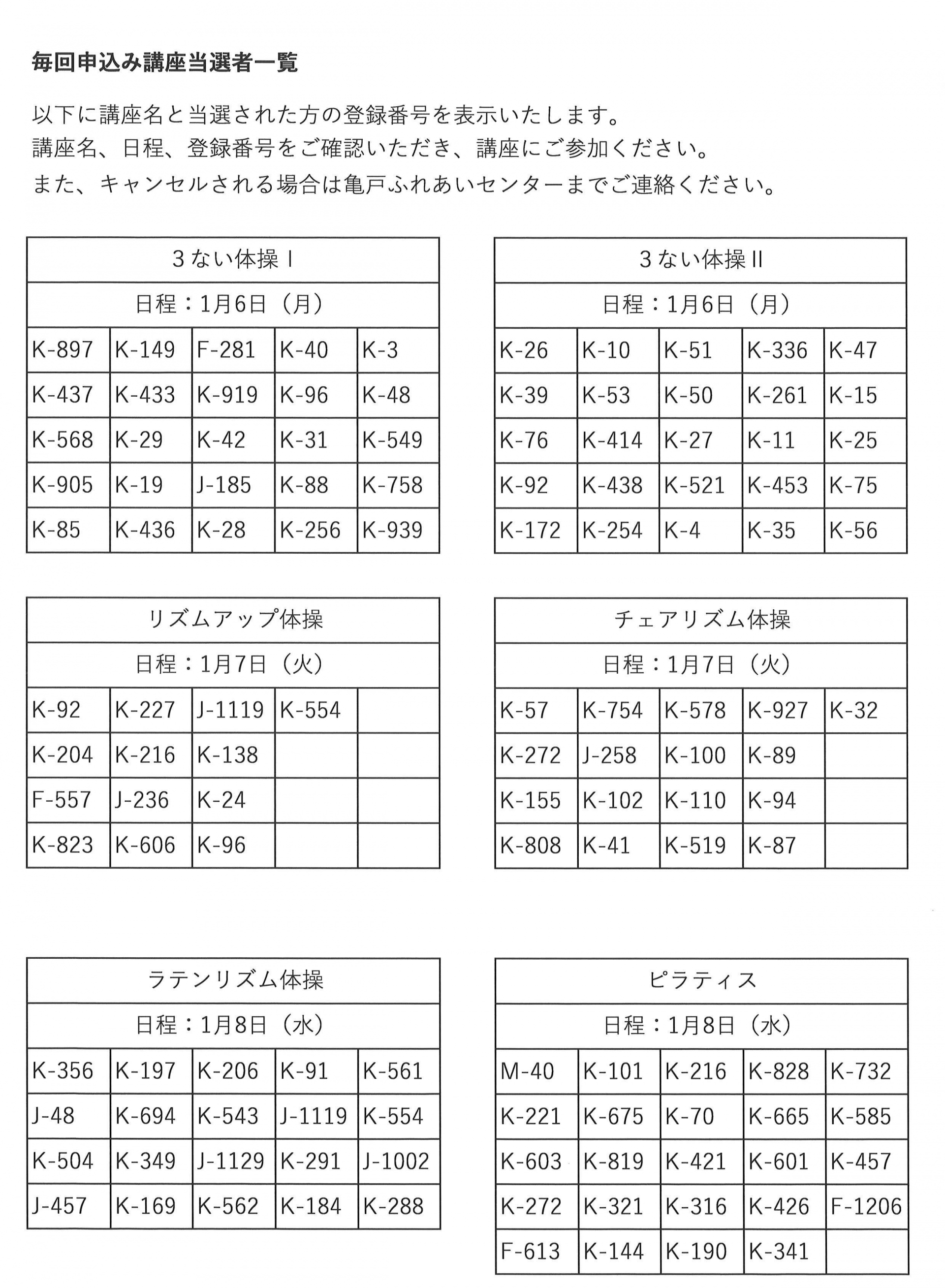 1月前半開催毎回申込講座 当選連絡その1【体操講座】