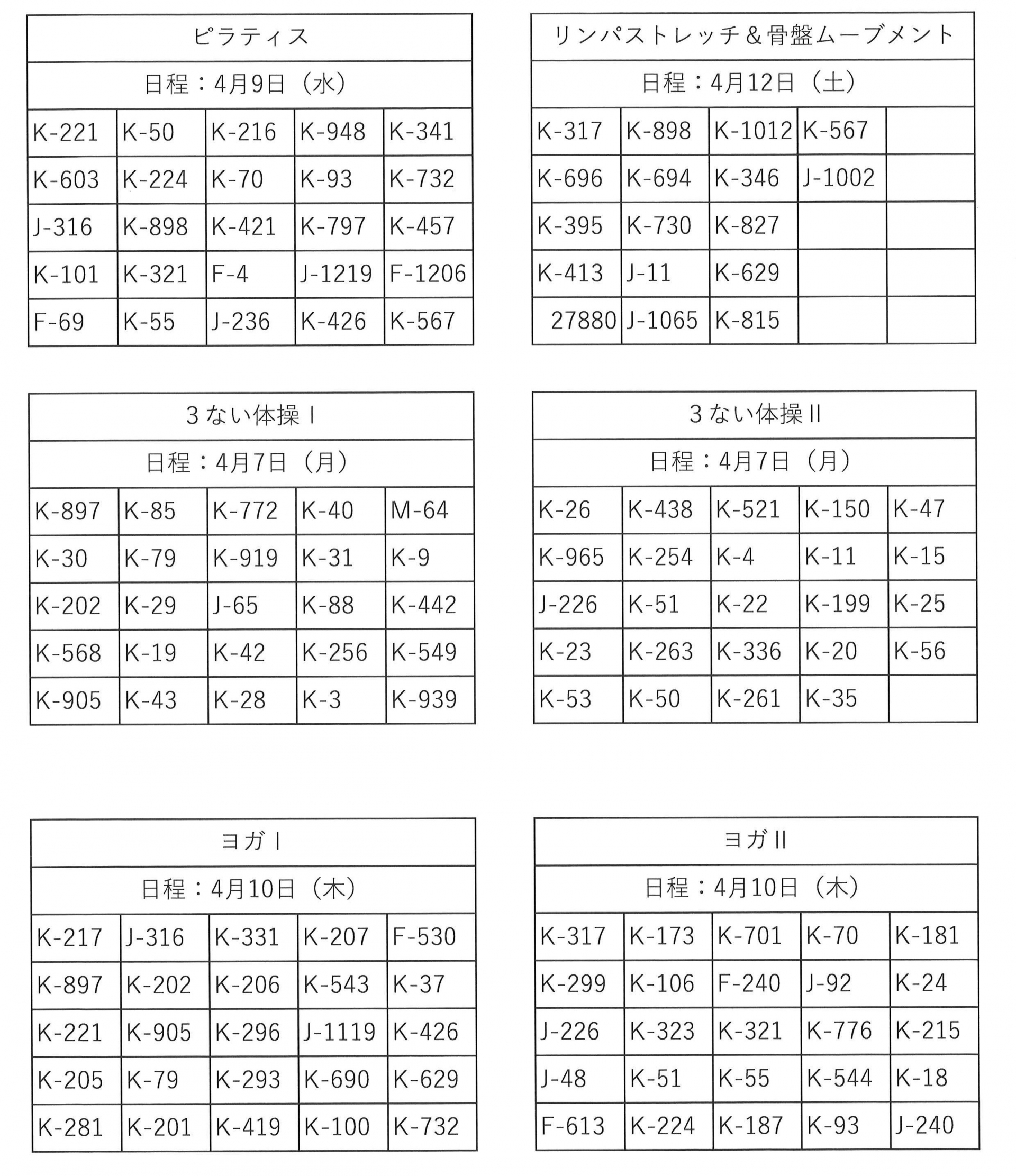 4月前半開催毎回申込講座 当選連絡その1【体操講座】