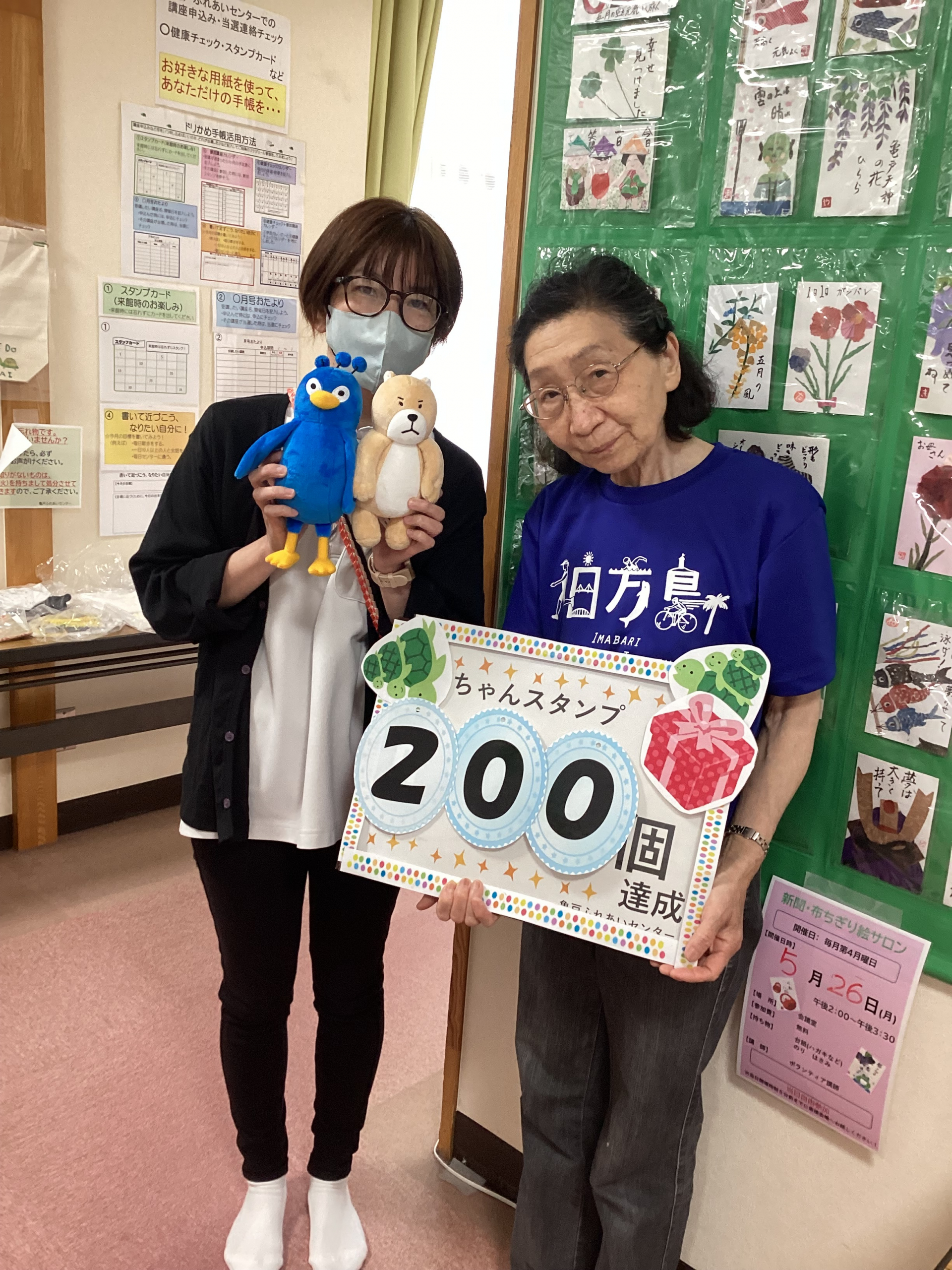 亀戸ふれあいセンターのお楽しみ かめスタンプ200個達成された方のご紹介です。