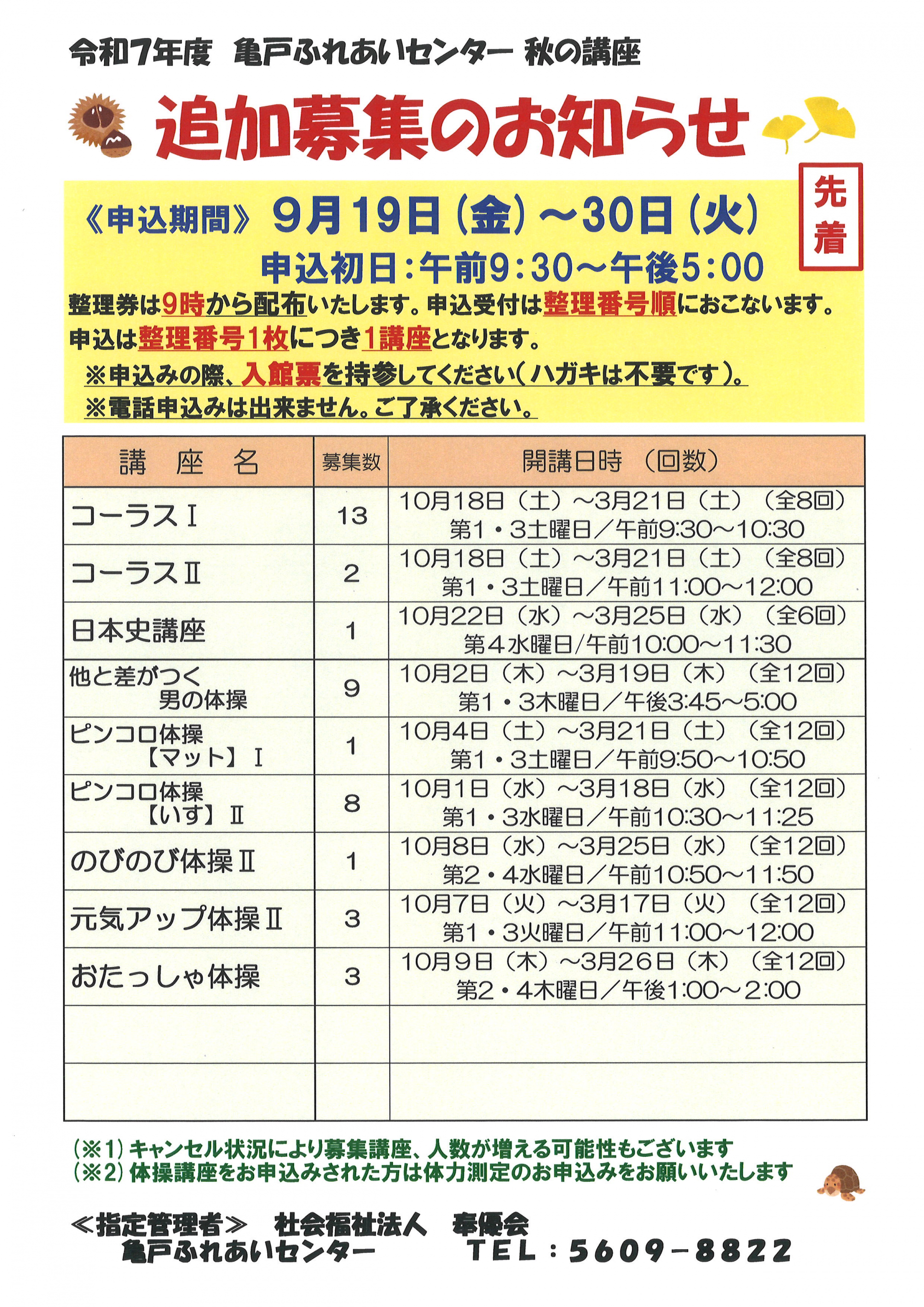 R7年秋の定期講座の追加募集