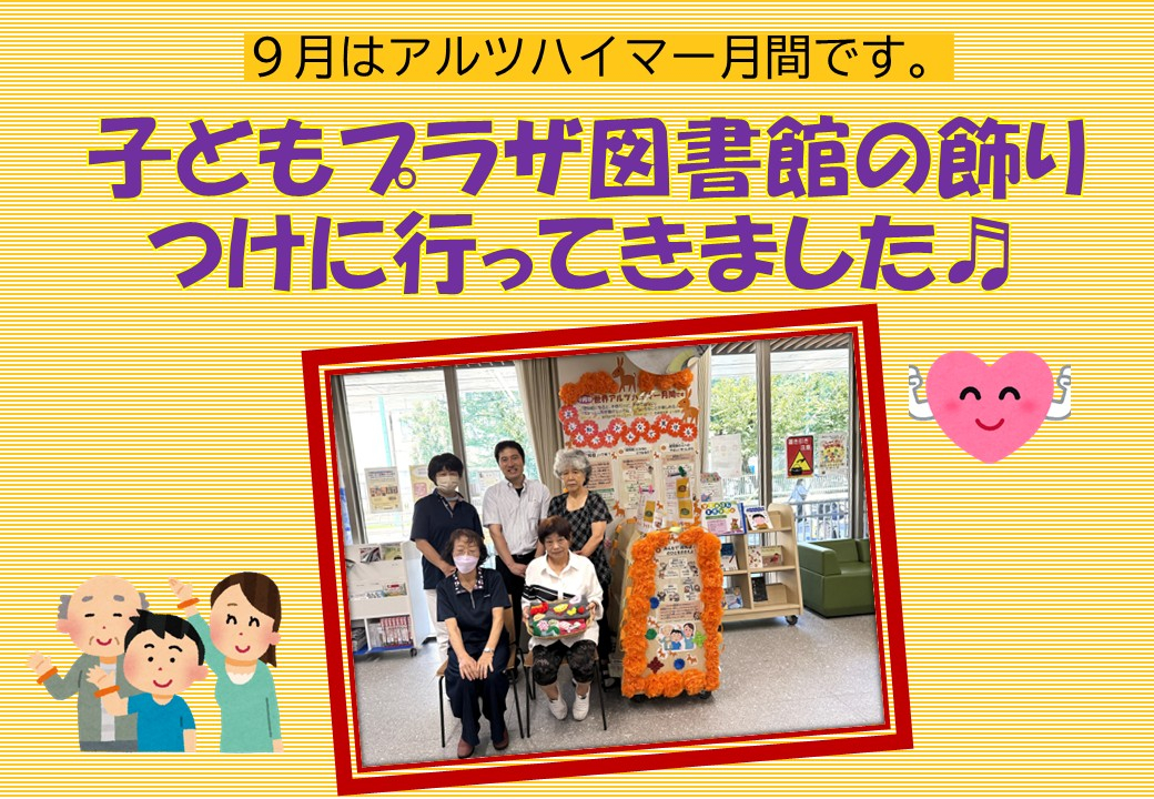 亀戸ふれあいセンターでは認知症サポーターのM.Kさん、O.Kさん、I.Mさんと一緒に『子どもプラザ図書館』へ飾りつけに行ってきました。