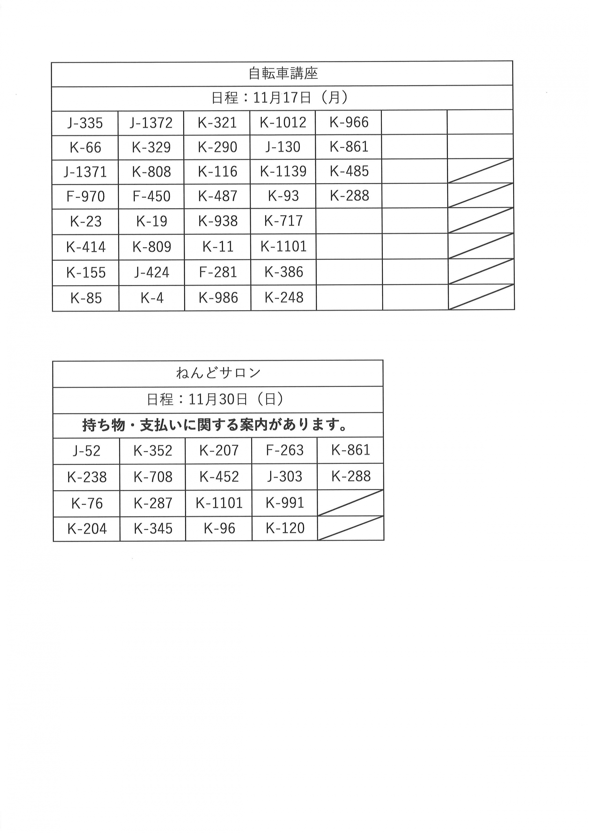 11月後半毎回申込講座 当選連絡その2【その他の講座】
