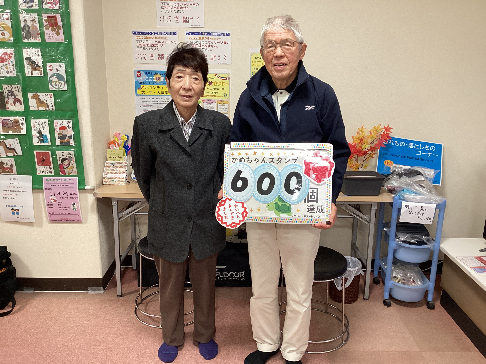 亀戸ふれあいセンターのお楽しみどりかめスタンプ600個達成者のご紹介です。