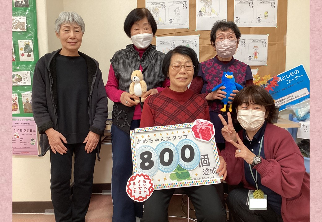亀戸ふれあいセンター来館時のお楽しみ、一日1つ押させていただくかめちゃんスタンプを800個達成しました、Y.M様です。