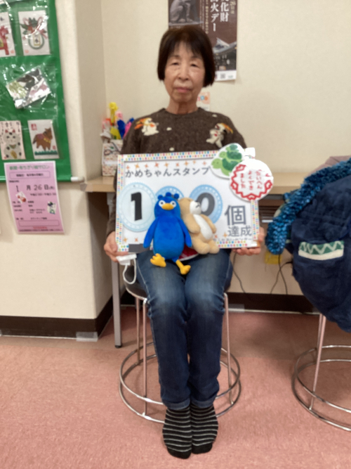 亀戸ふれあいセンター来館時のお楽しみ、かめちゃんスタンプ300個達成しましM.K様です。
