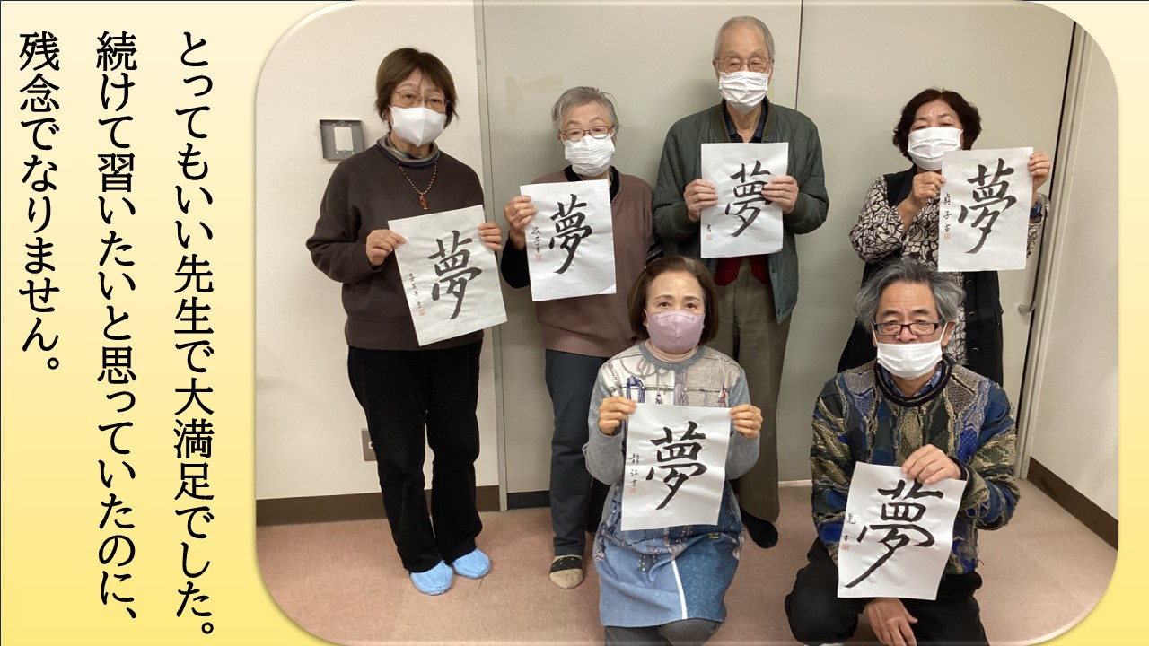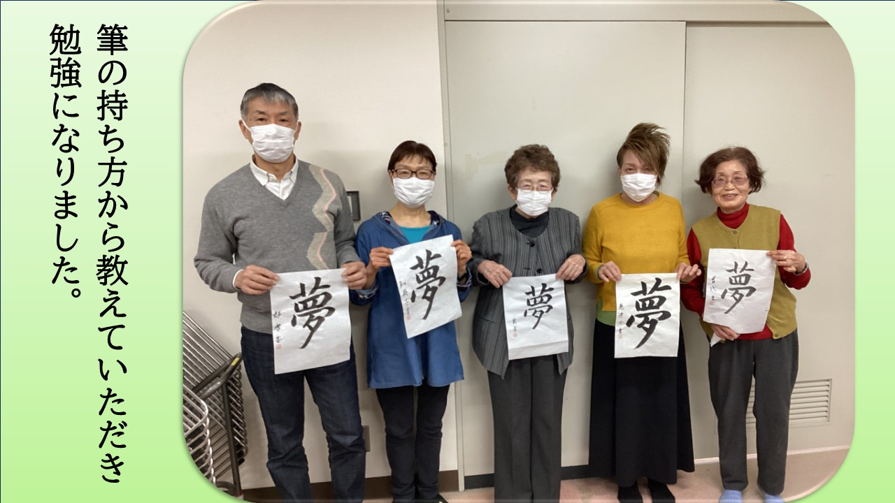 今回の書道(漢字)の受講者の方への最後のお手本、夢の力作をご覧ください。
