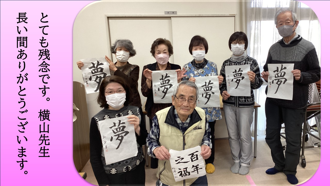 定期講座書道(漢字・かな)の講座を20年以上の長きに亘リご指導いただきました横山青桂先生が、今期をもって最後となってしまいました。横山青桂先生は厳しさと個々への的確なアドバイスでメリハリのある講座が人気でした。