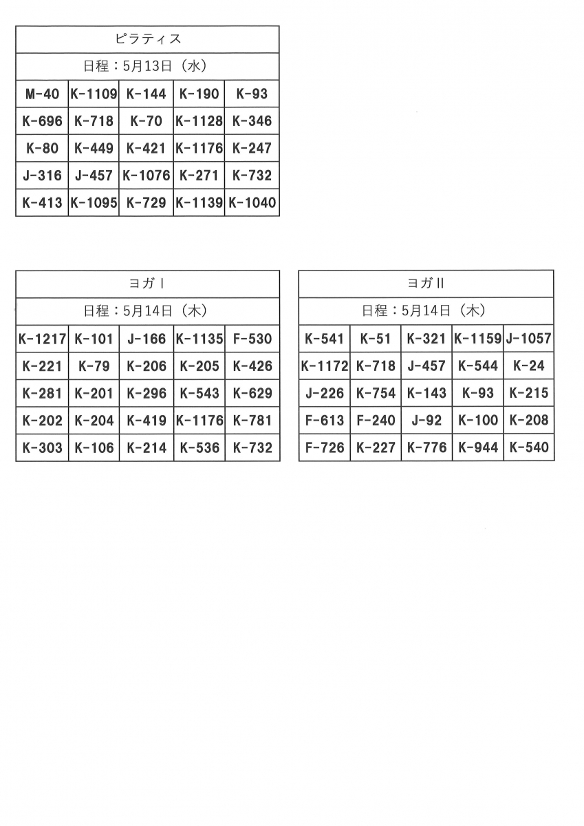 5月前半開催の毎回申込み講座の当選発表