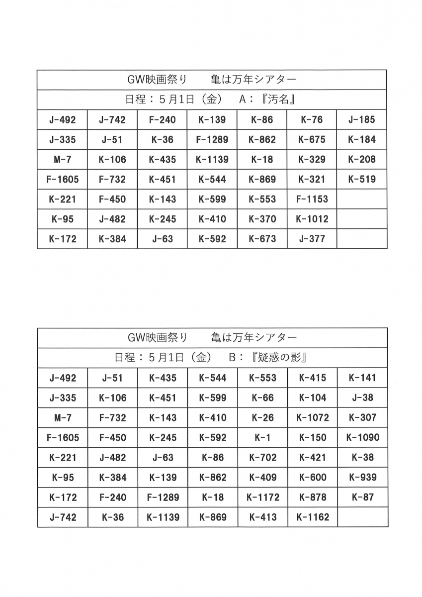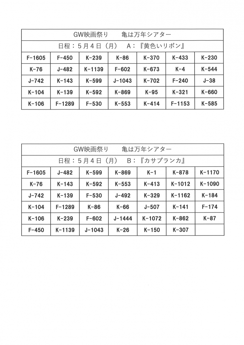 その2では、折り紙サロン、亀は万年シアターとゴールデンウィーク映画祭りの結果を発表いたします。