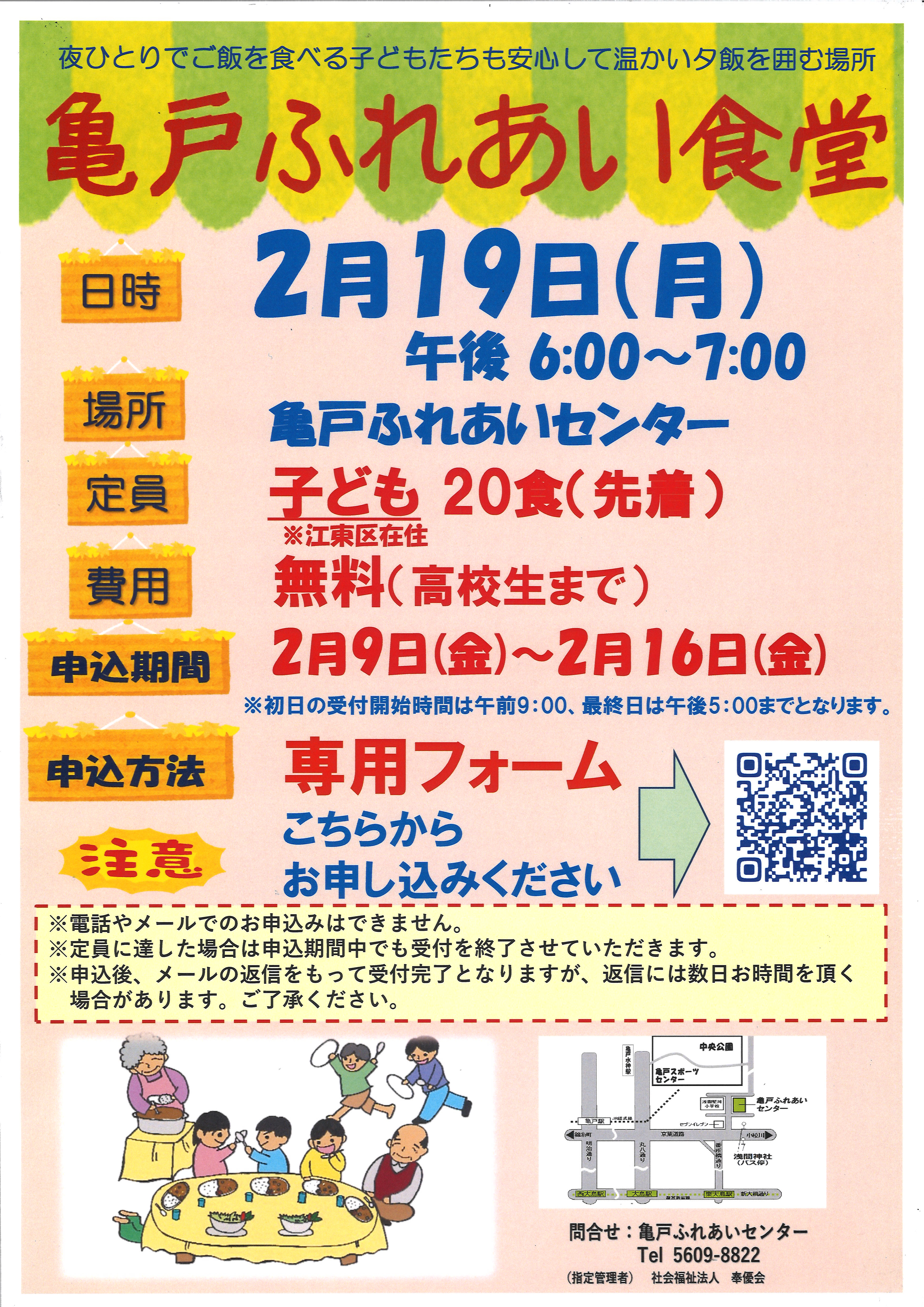 次回の亀戸ふれあい食堂は、2月19日(月)午後6:00~開催します。