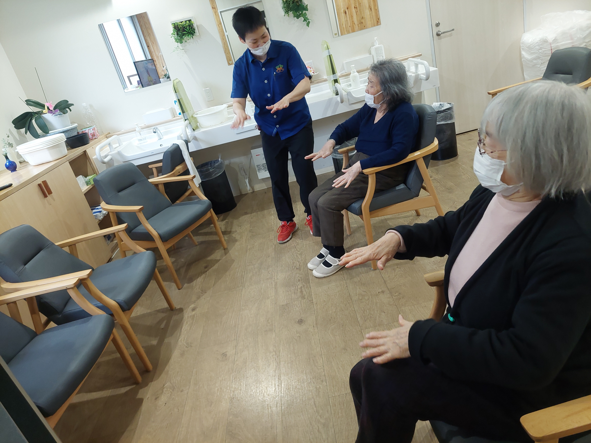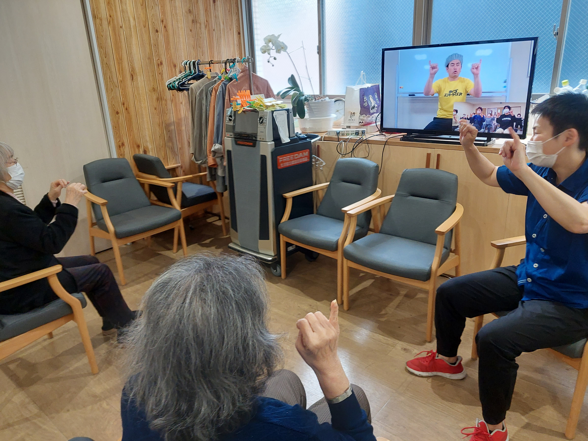 本日は、久しぶりに介護エンターテインメントの石田竜生さんと一緒に体操を楽しみました。