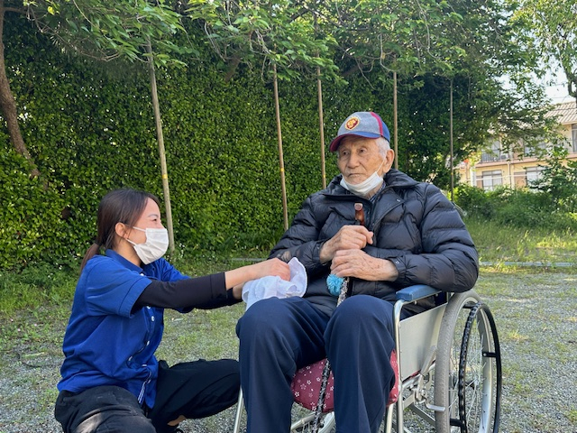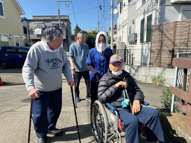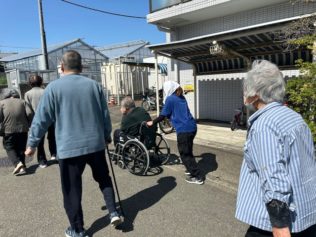 「結構な距離歩いたよ!気持ち良かったね」と日差しをいっぱい浴びて良い歩行訓練(外気浴)となりました(/・ω・)/