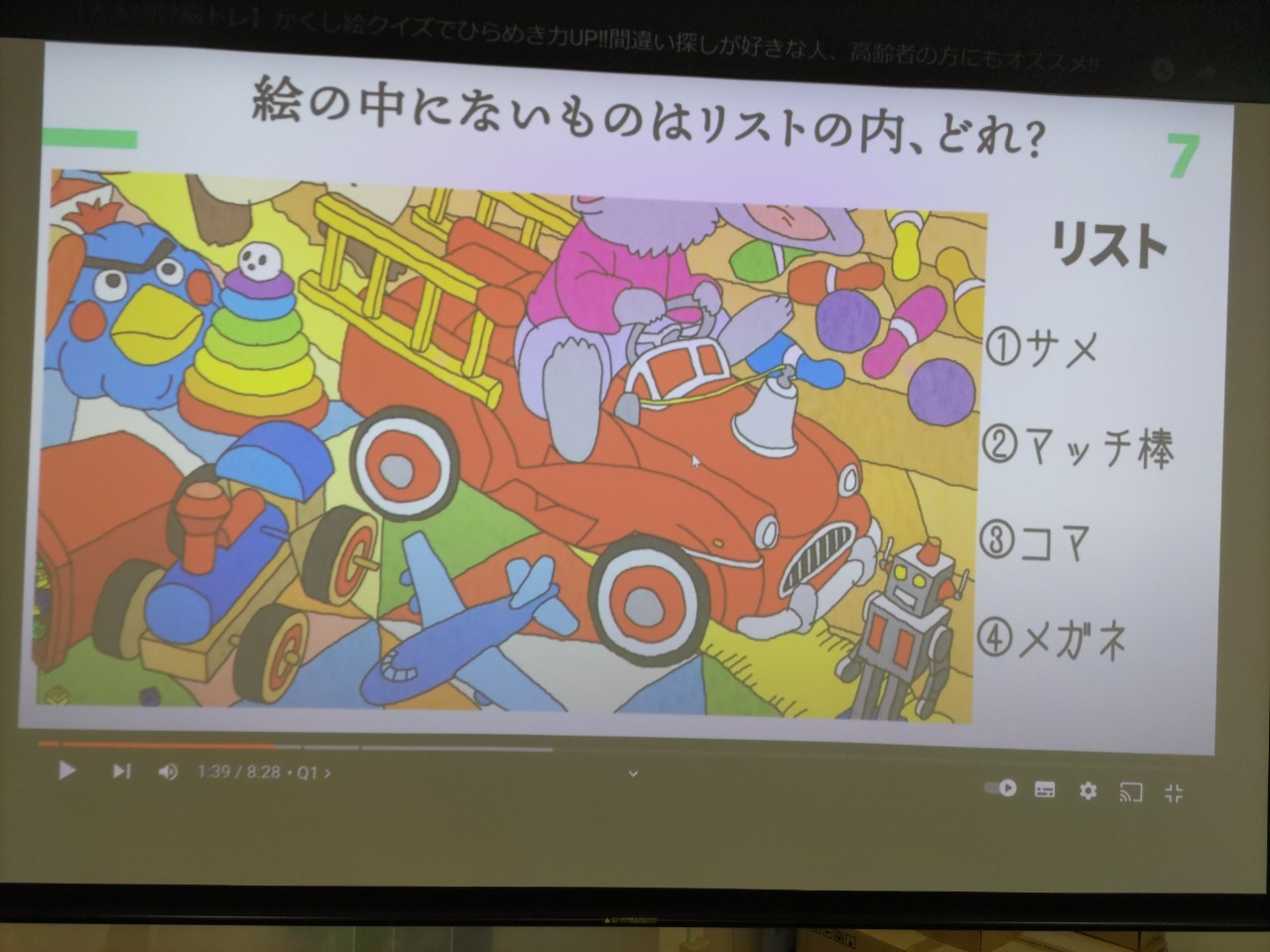 食後の体操の後、絵の中に隠されたリストを見つける『隠し絵クイズ』を行いました☆