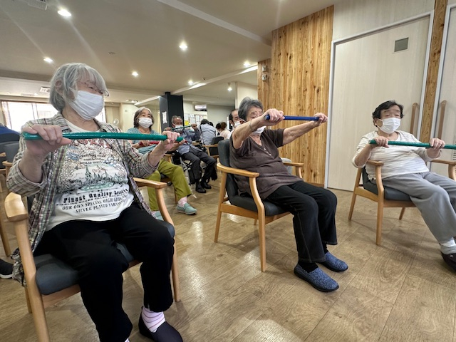 午前中の機能訓練は上半身よりも下半身のトレーニングが多いイメージなので、午後は上半身ということですね(^-^;
