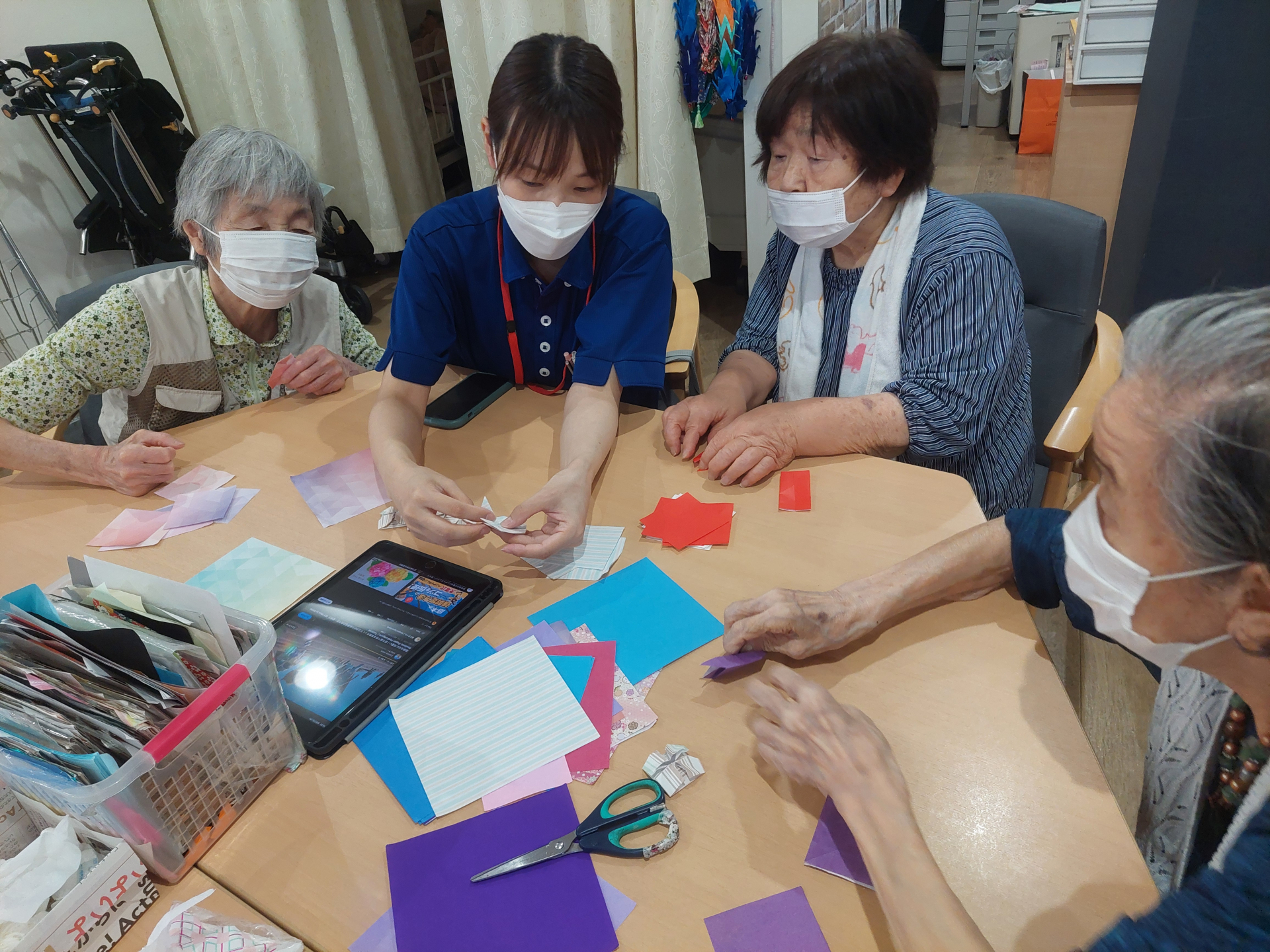 途中折り方が分からなくなった方がいれば、有馬の皆さまは優しい方ばかりなので教え合いながら進めていきます~