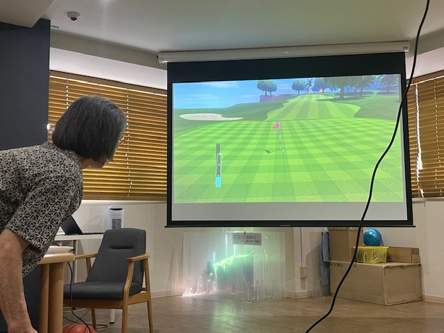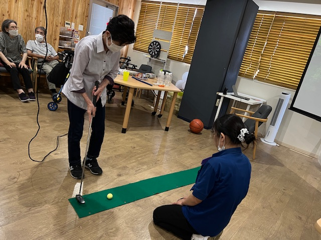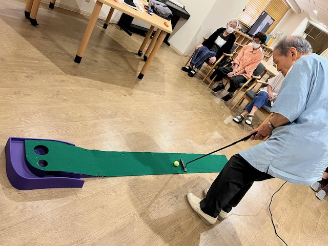 ゲームのようにドライバーで吹っ飛ばすことはできませんが、パターでちょこっと打つだけでもやっぱり盛り上がります!