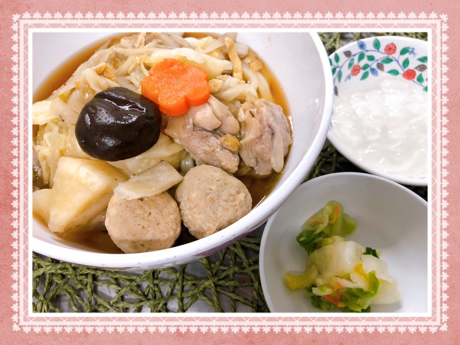 野菜たっぷり、肉団子に鶏肉と具たっぷりの一品です♪