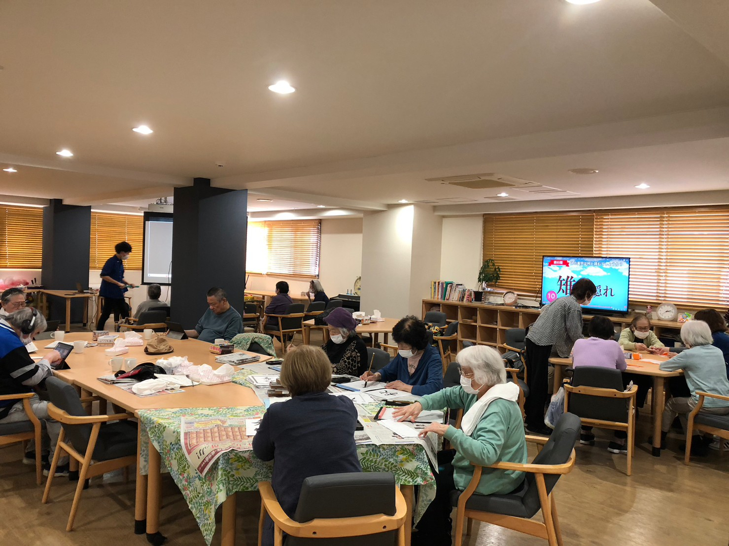 周りでは、スクリーンレク、体操、手工芸、などのレクが賑やかに行われているのに・・