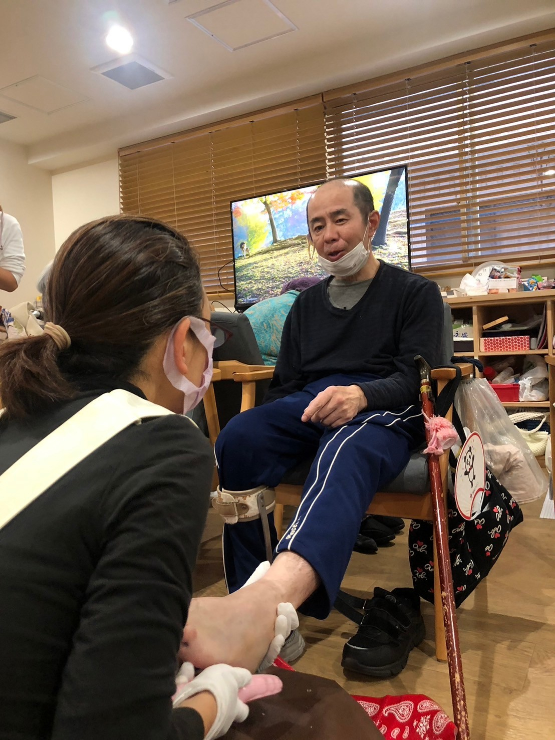 1対1のケアなので、その間短い時間ですが、お話が弾んでました♪