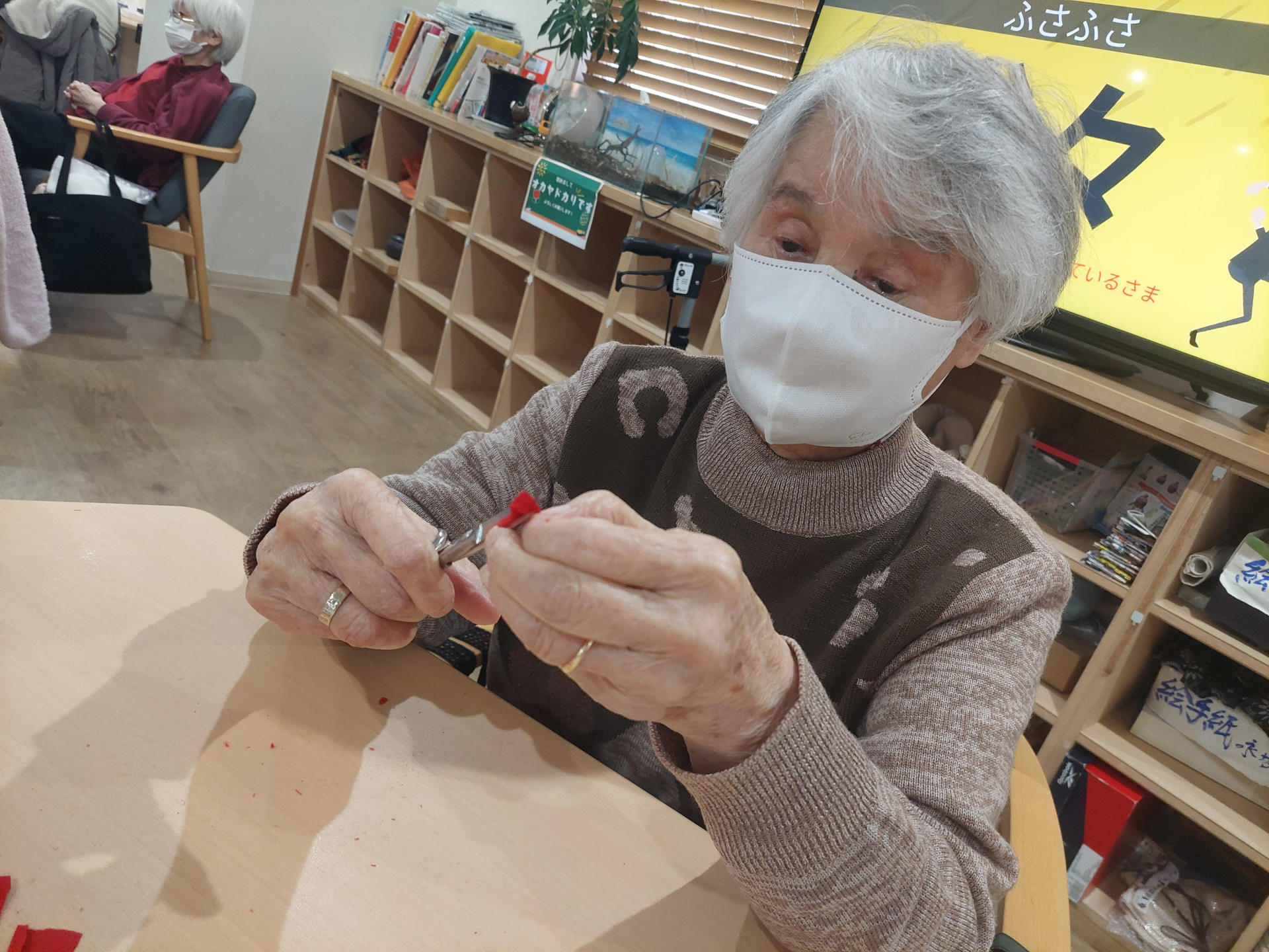 今日は、布を切る下準備をお願いしました。