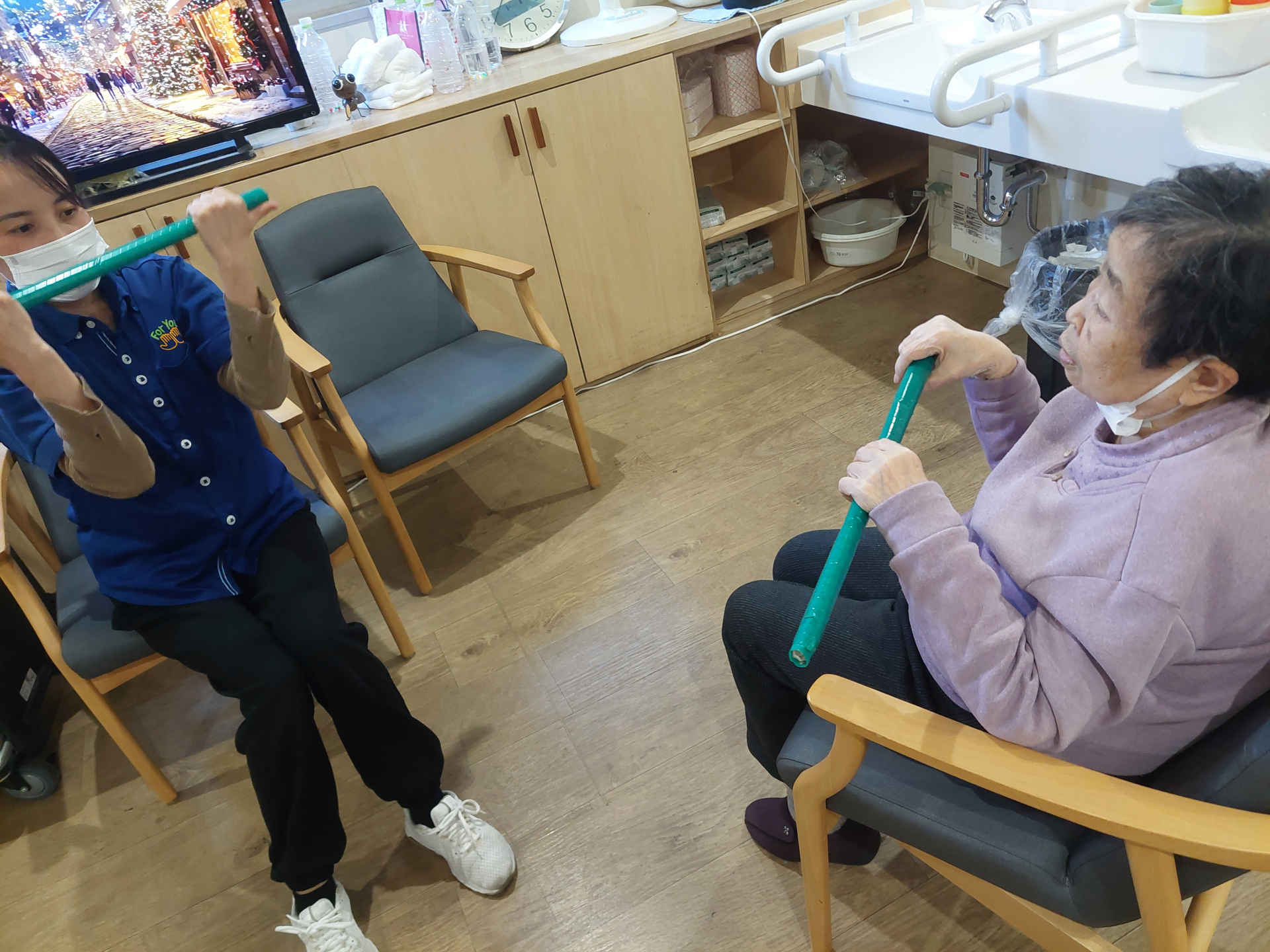 今日の体操コーナーは、少人数だったので、個別機能訓練のようにみっちりできましたよ♪