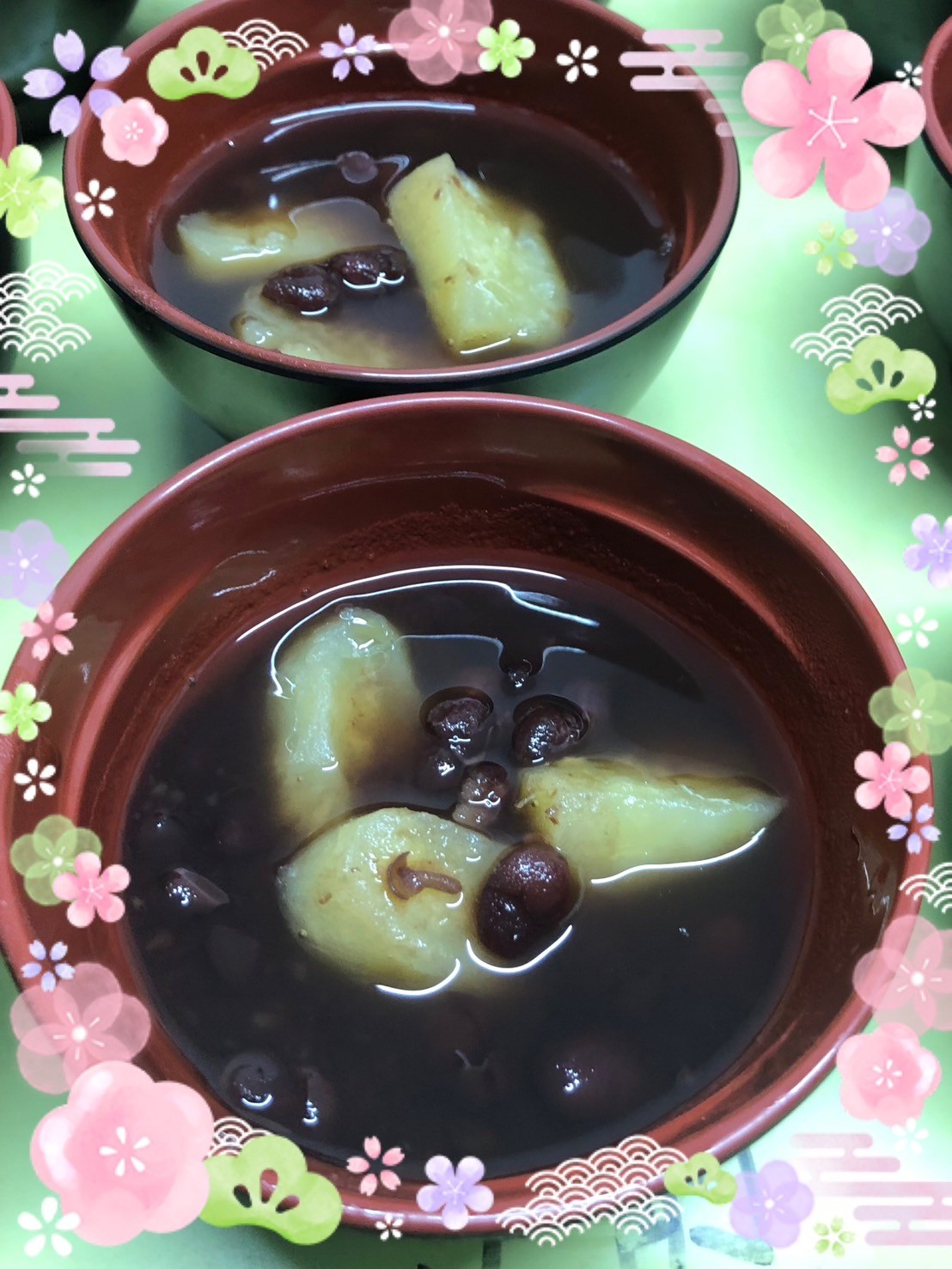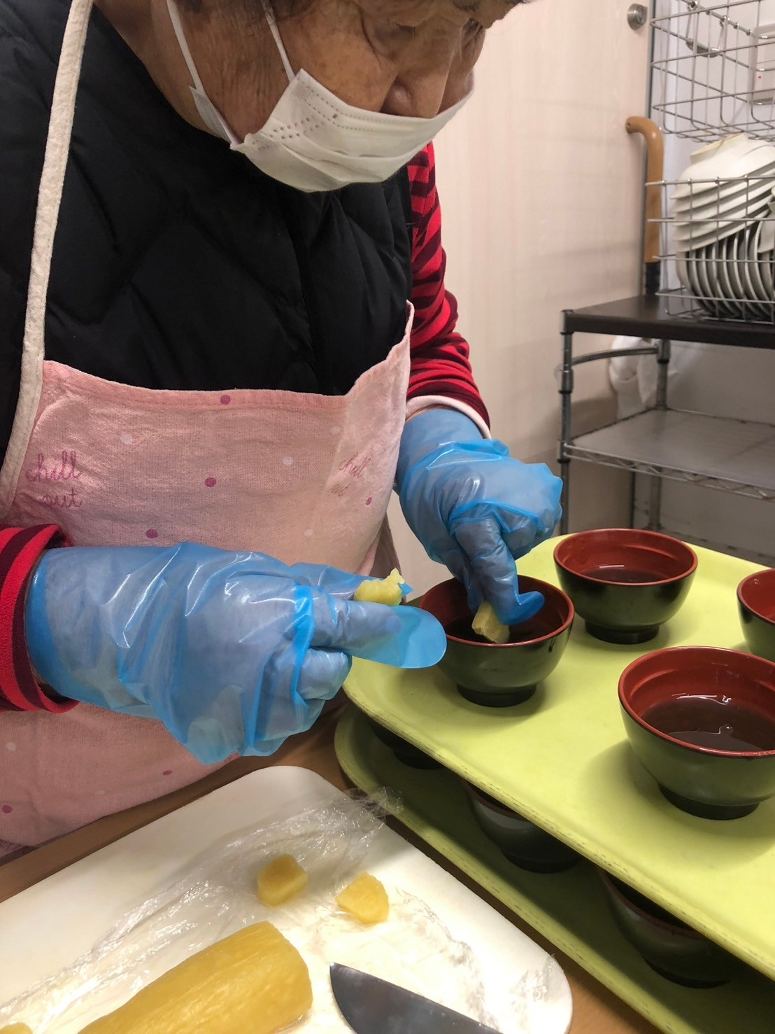 「さつまいも餅入りおしるこ」ができました(*^^)v