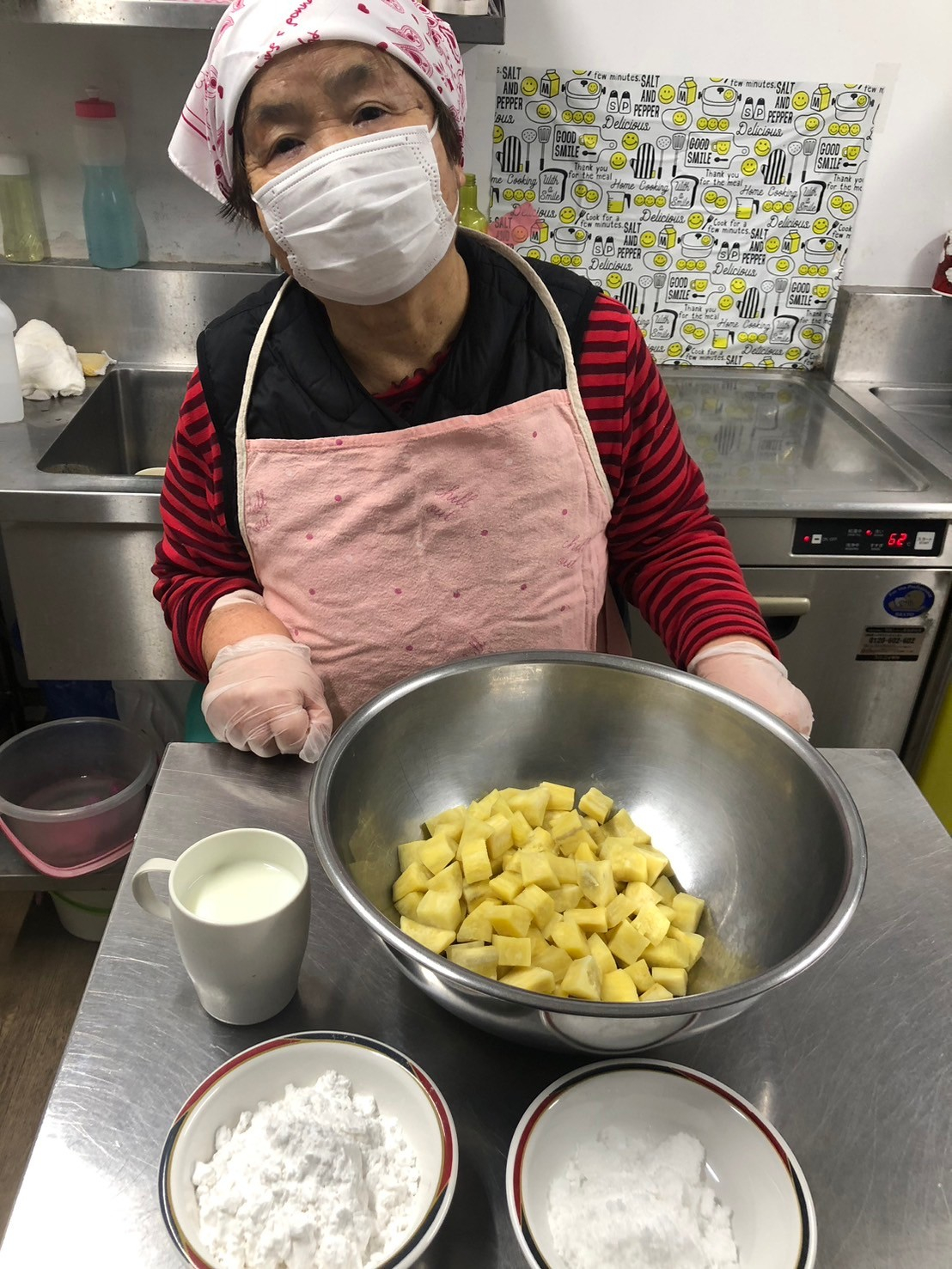 私は下準備をしただけでご利用者様のお力でできあがったさつまいも餅です♪