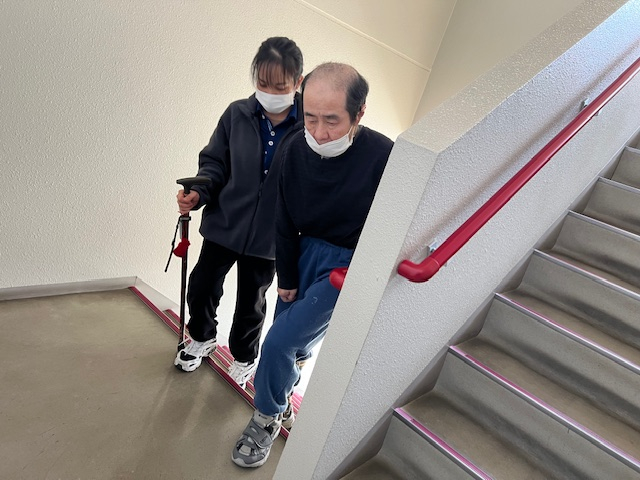 今日はオアン職員とマンツーマンの階段昇降訓練です。