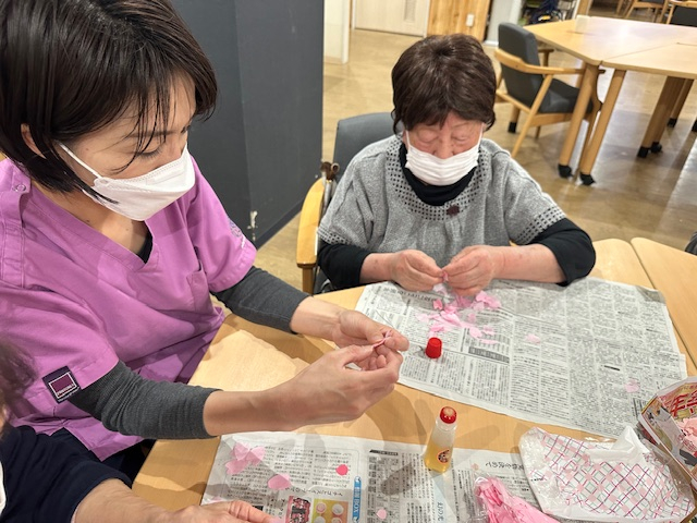 花びらを組み合わせる作業、板についてきたようで本日最高14枚お一人で完成させました!