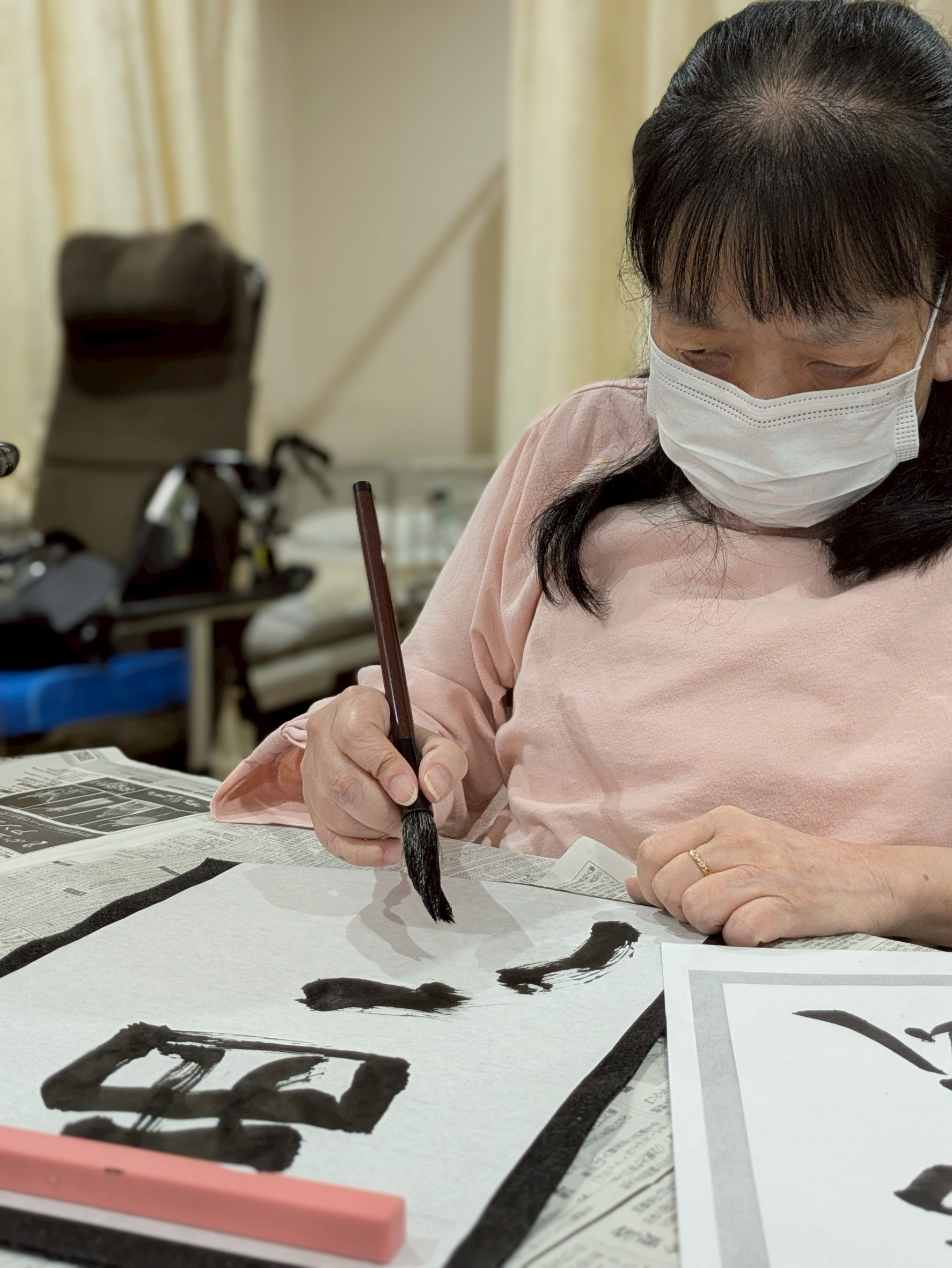 「なんだかうまく書けないわ」と何枚も練習され、満足のいく書が書けたときの