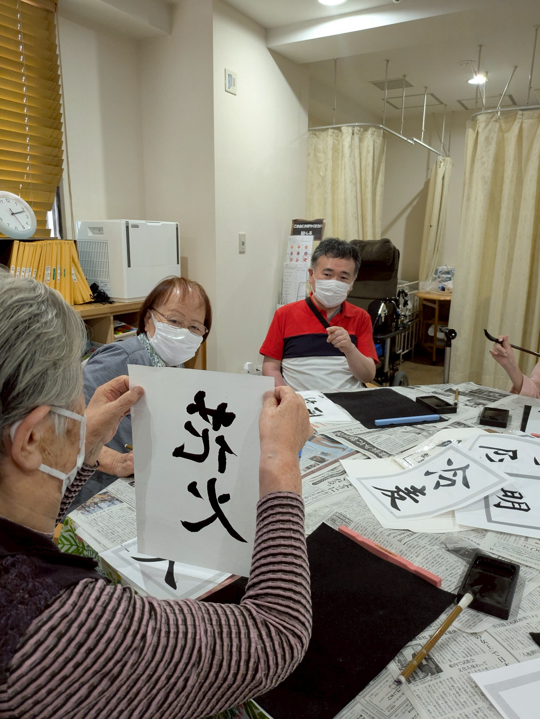 他の方とも書いた書を見て「もう少しここがこうだね」など・・・