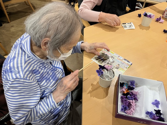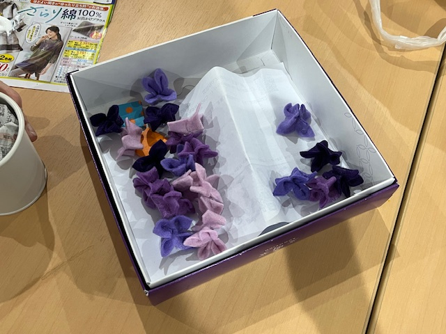 一つずつ綺麗に花びらにしたフェルトを丁寧に乗せていきます!