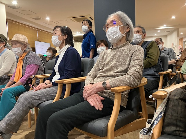 後半には、『夏は来ぬ』、『花笠音頭』などの唱歌や民謡。『高原列車は行く』、『ブルーライト横浜』などの歌謡曲を計10曲、演奏と一緒にみなさんで歌いました♪♪
