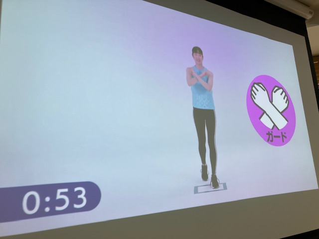 「パンチ」「アッパー」「ガード」「チョップ」4つの動作(上肢も下肢もどっちも動かして!)を行いながら、