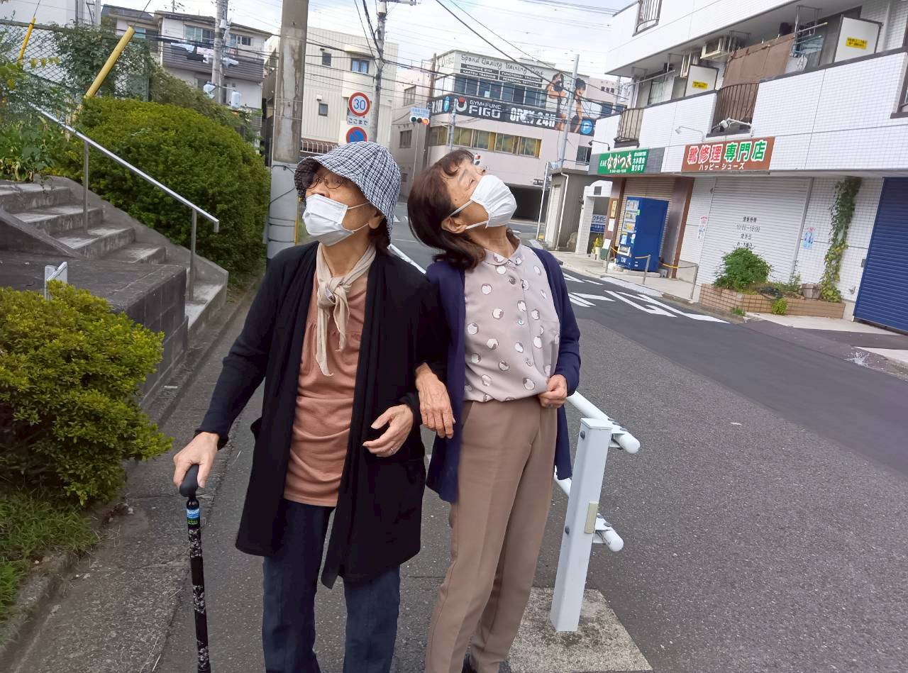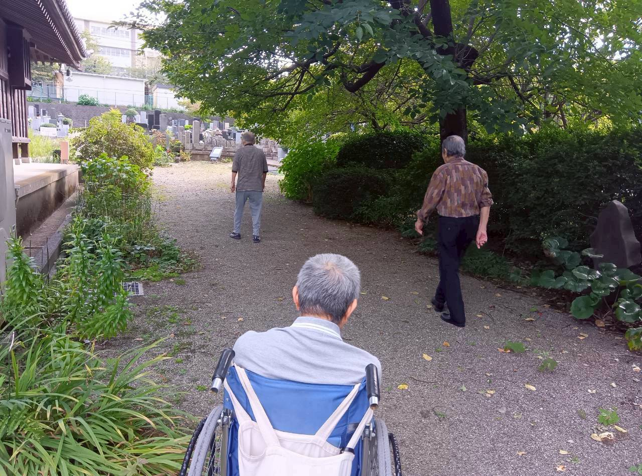先週辺りまでは、熱中症の危険があるため外出歩行訓練は控えていましたが、やっと涼しくなってきた!!ということで、お誘いすると『久しぶりの外で嬉しい!!』と大喜びのみなさん(*^-^*)